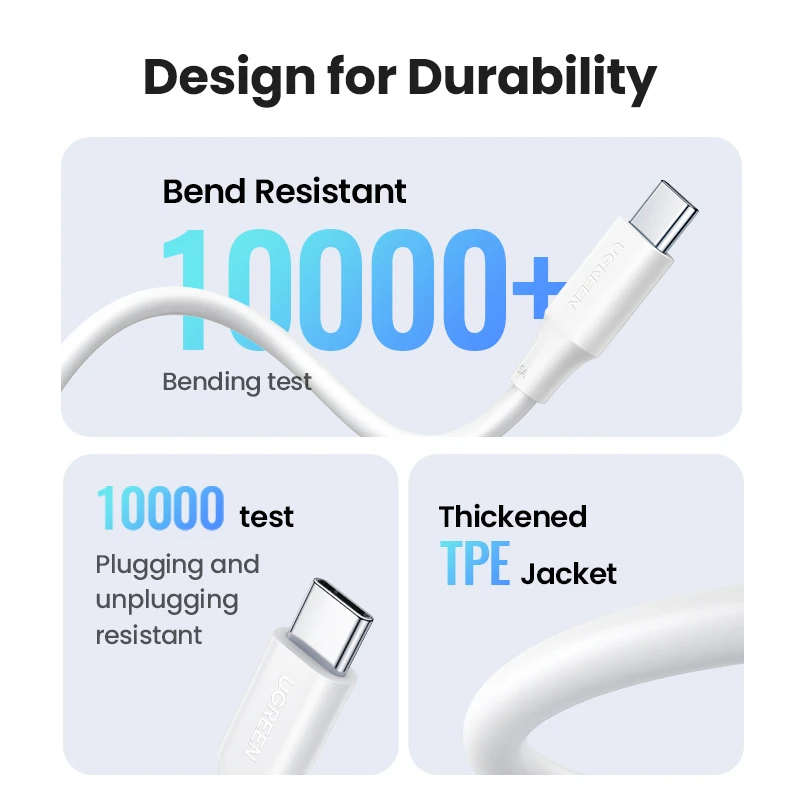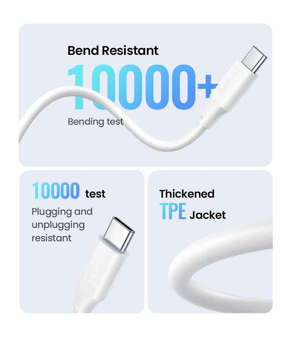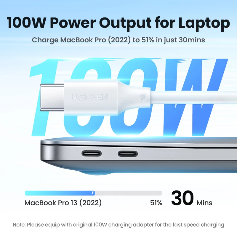 UGREEN 100W USB C Cable for MacBook Pro for Samsung Galaxy A52s Fast Charging Cable 5A built in E-marker Chip USB Type C Cable