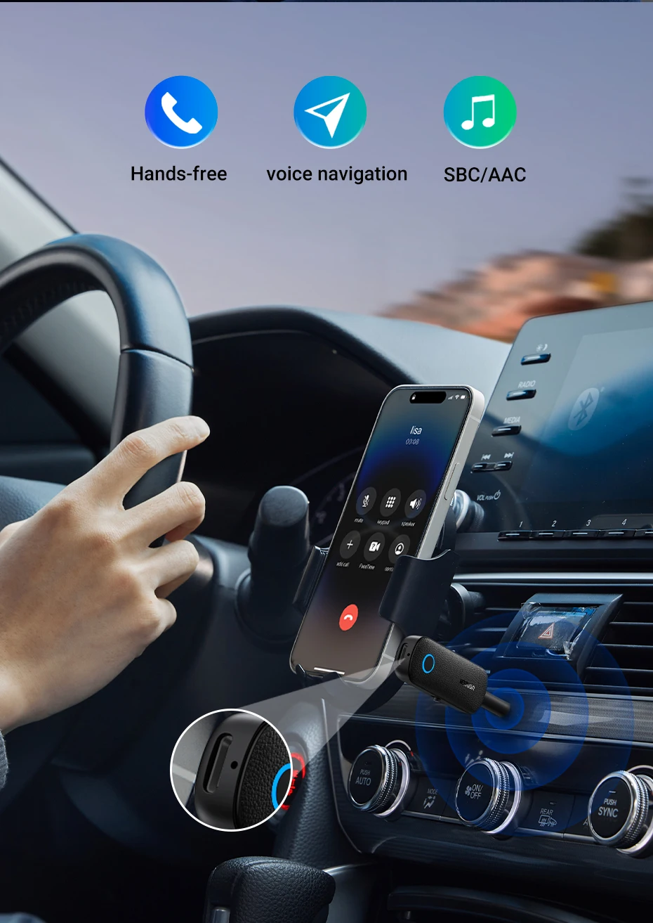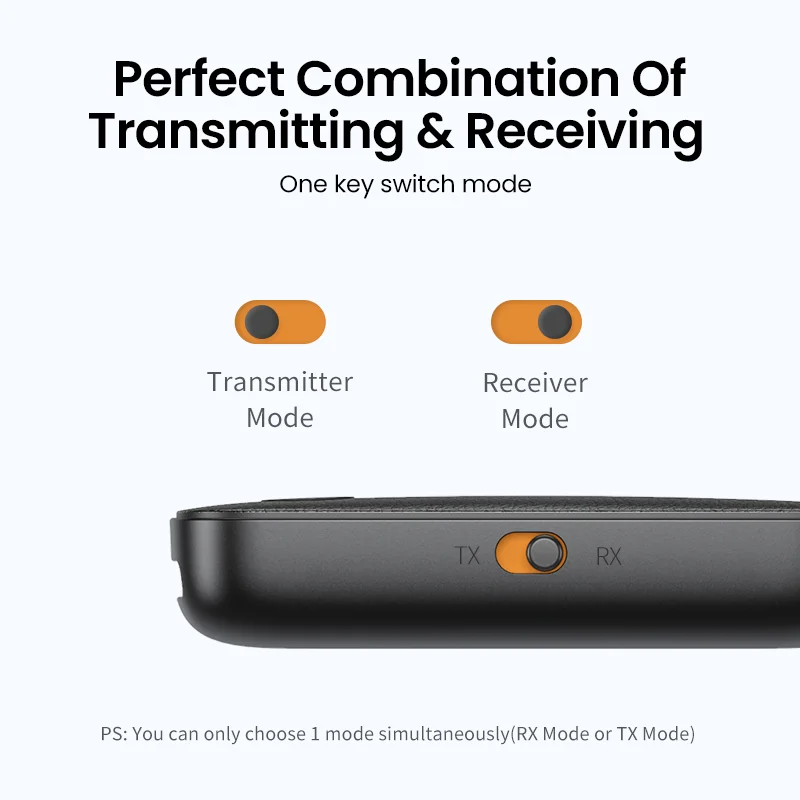 This product supports both Bluetooth transmitting and receiving, namely TX and RX Mode. Toggle the button to switch TX or RX mode. ( Note: Phone calls only be supported in RX mode, not in TX mode).Safe Driving with Car Bluetooth Aux Adapter
