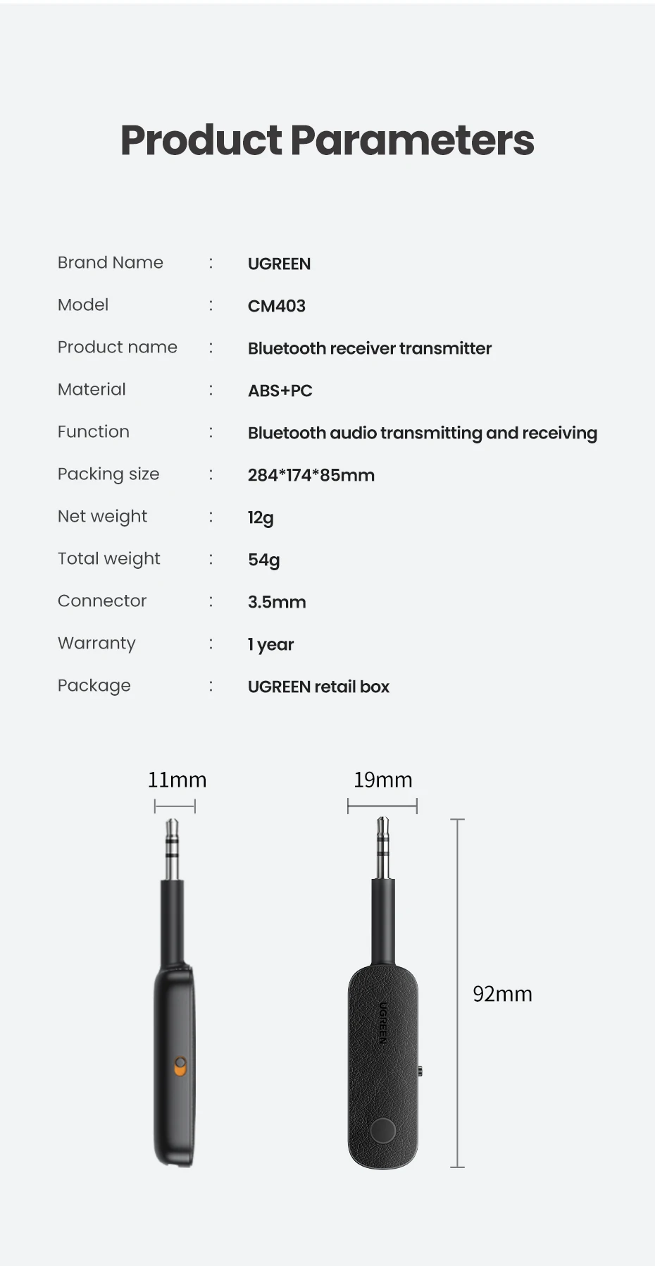 Ultra-compact design of this Bluetooth transmitter and receiver would save you space. You can easily carry this adapter around and everywhere easily without any hassle.Produt ParametersPackage DisplayTX Mode