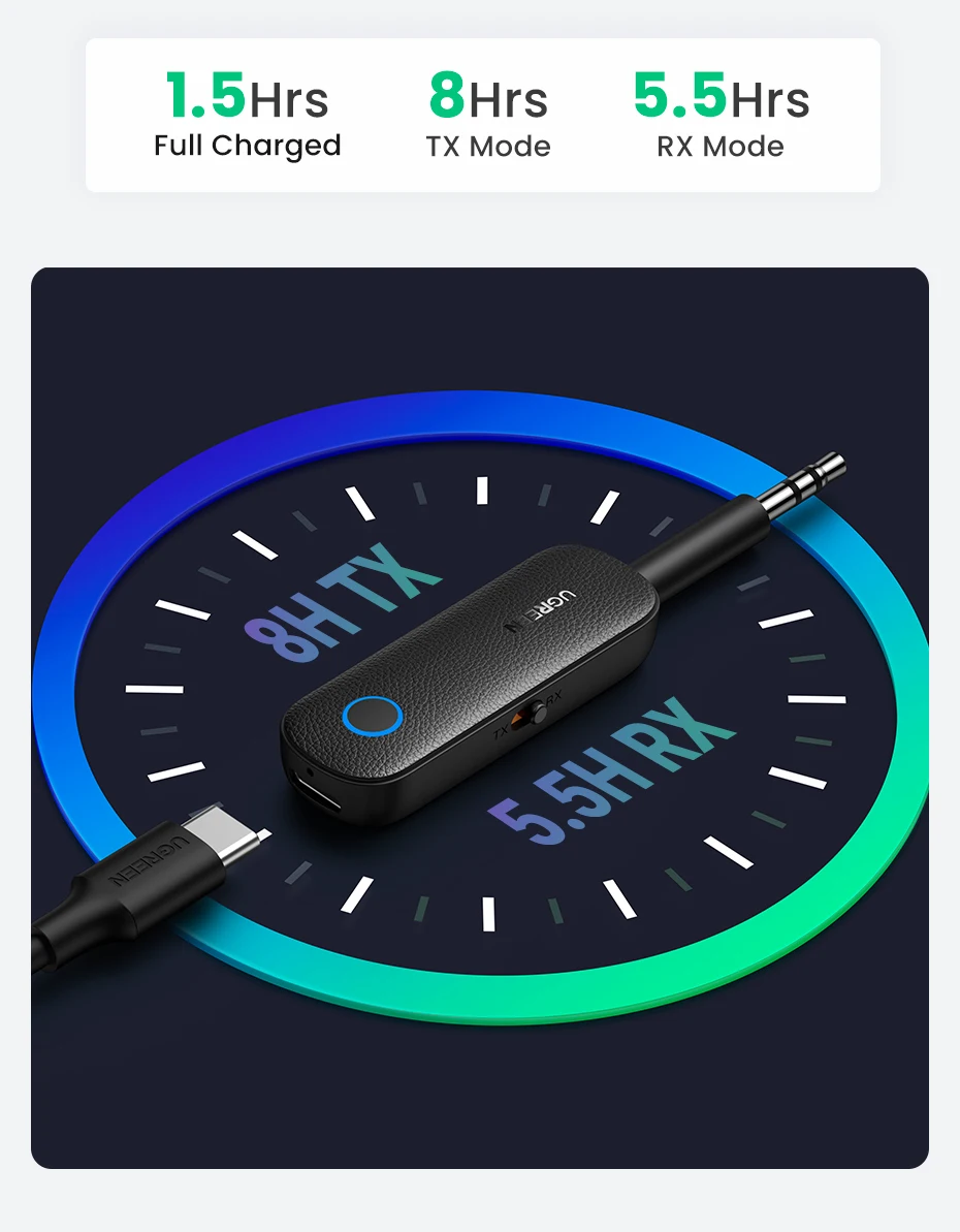 lt built in 145mAh lithium battery with Great Battery Life, keeping 5.5 Hours in RX Mode and 8 Hours in TX Mode.Compact and Portable