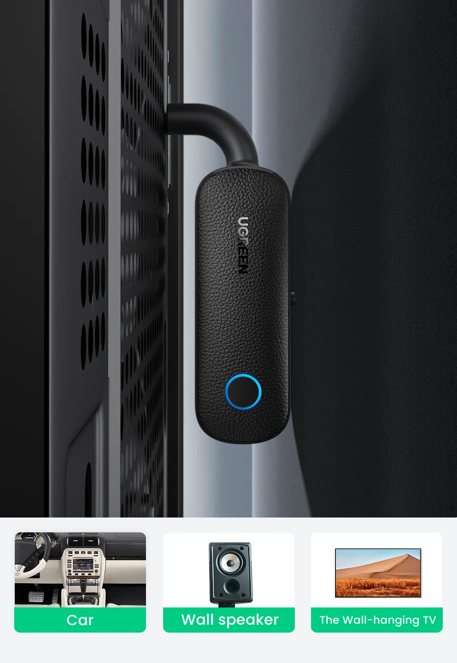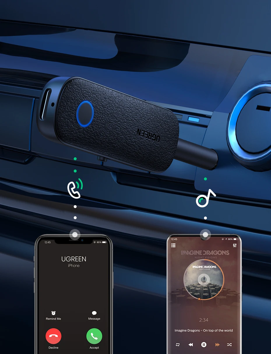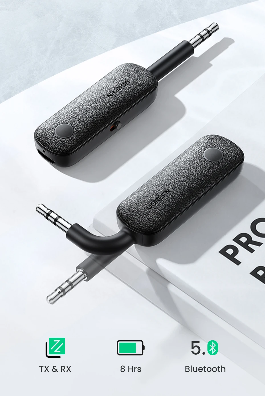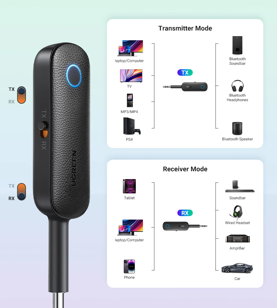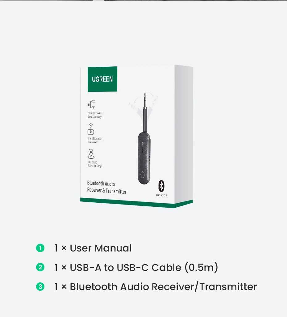UGREEN 2-in-1 Bluetooth Adapter Transmitter Receiver Bluetooth AUX 5.0 Wireless 3.5mm Adapter Stereo for Earphones TV Car Audio