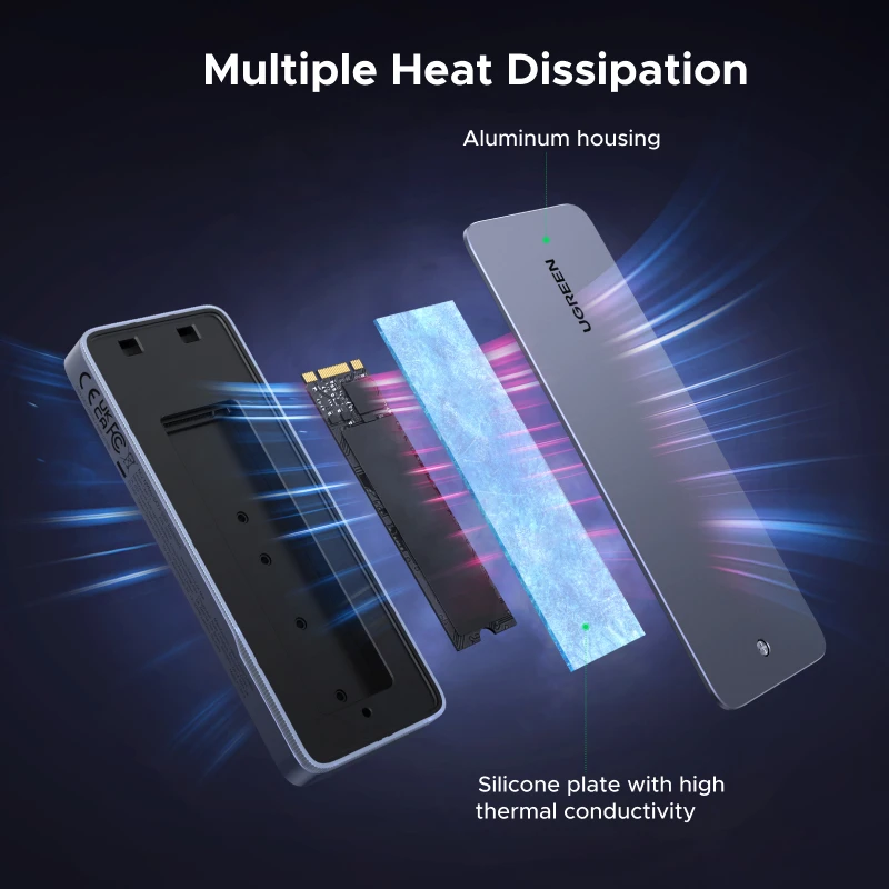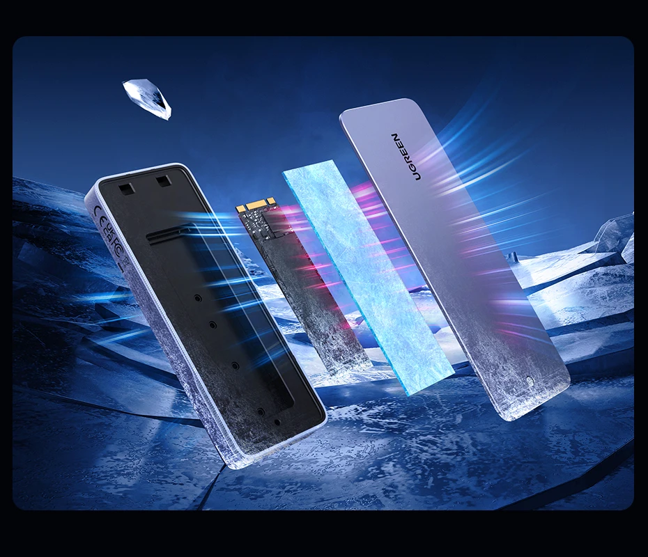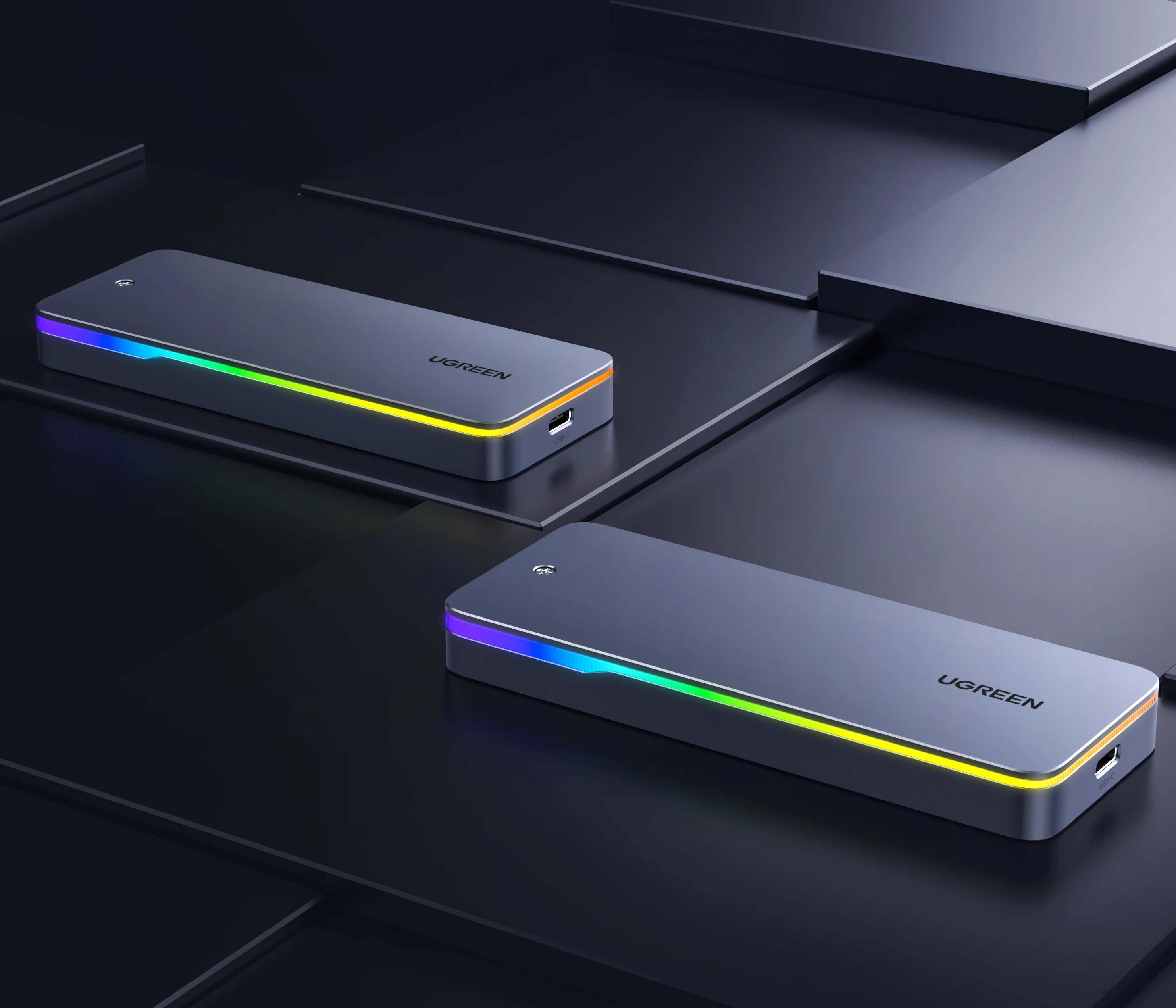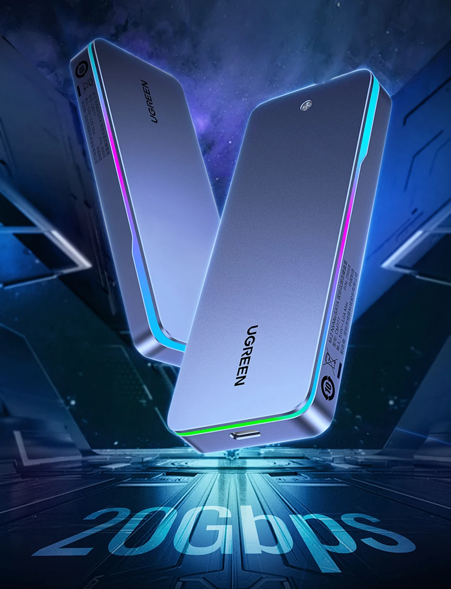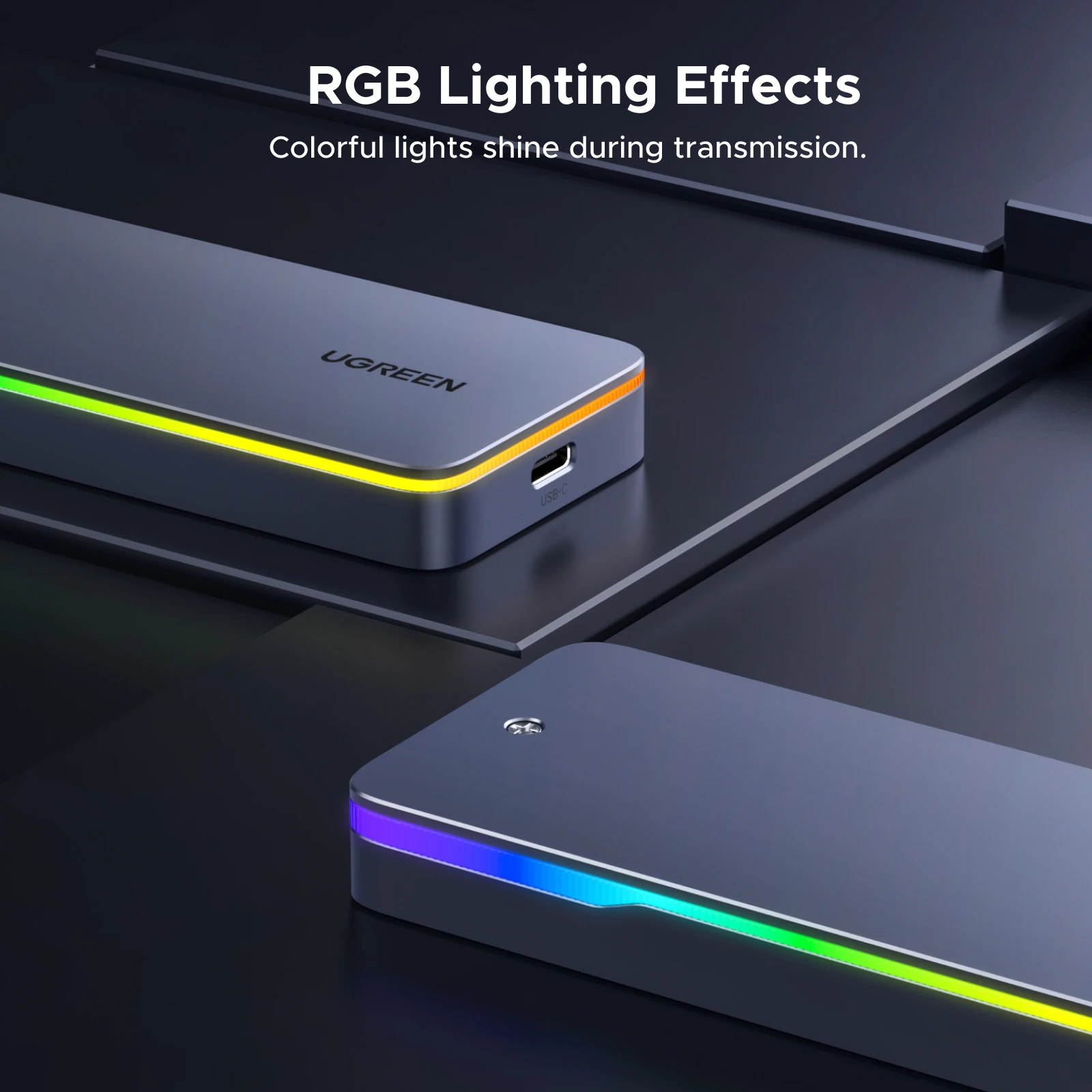 UGREEN 20Gbps M.2 SSD Case NVMe SATA SSD Enclosure Adapter USB 3.2 Gen2 External Enclosure Supports RGB Lighting effect