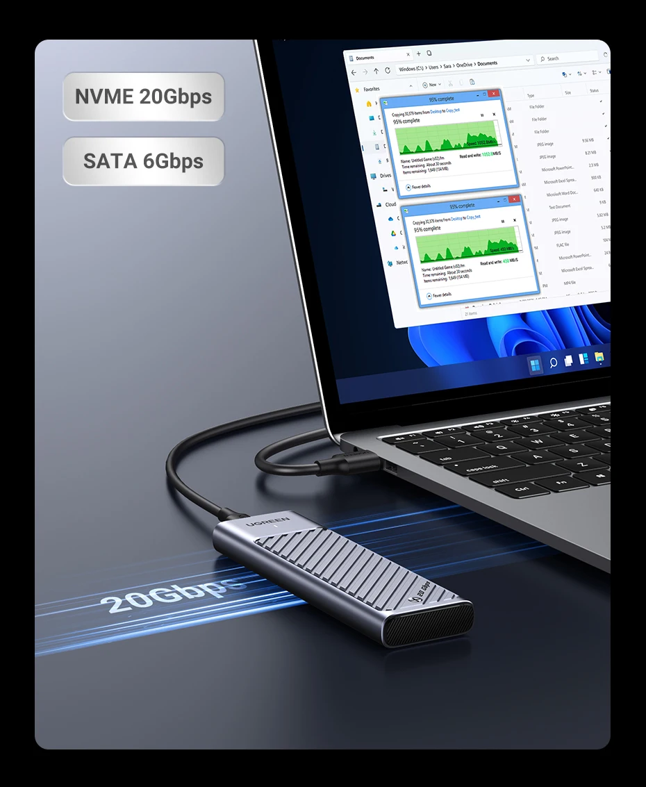 • Transmission Speed: 20Gbps (NVME)/ 6Gbps (SATA)