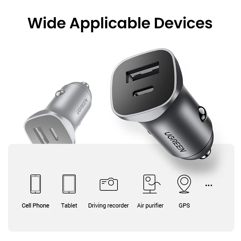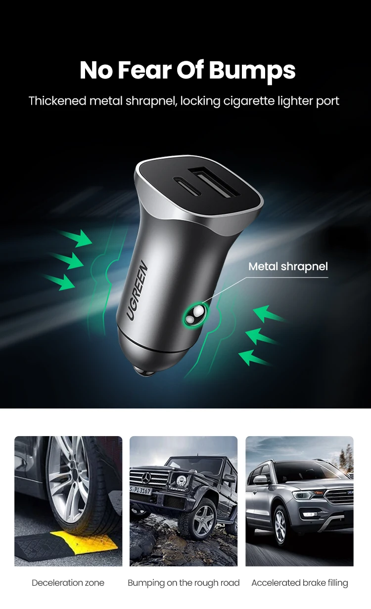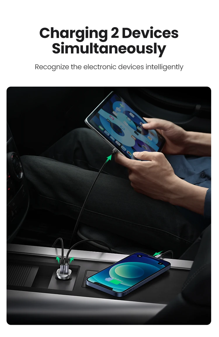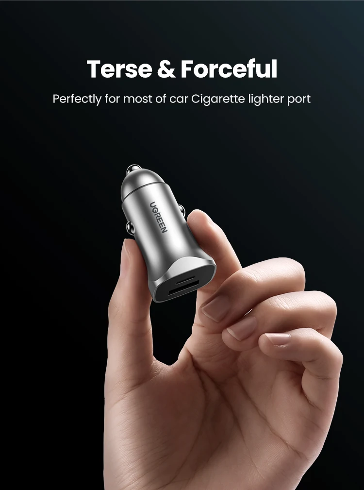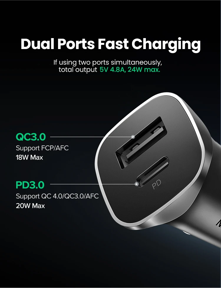 UGREEN 24W Car Charger Dual Port QC 4.0 3.0 Fast Charging For iPhone 17 16 15 Xiaomi Huawei Samsung Supercharge Type C Charger