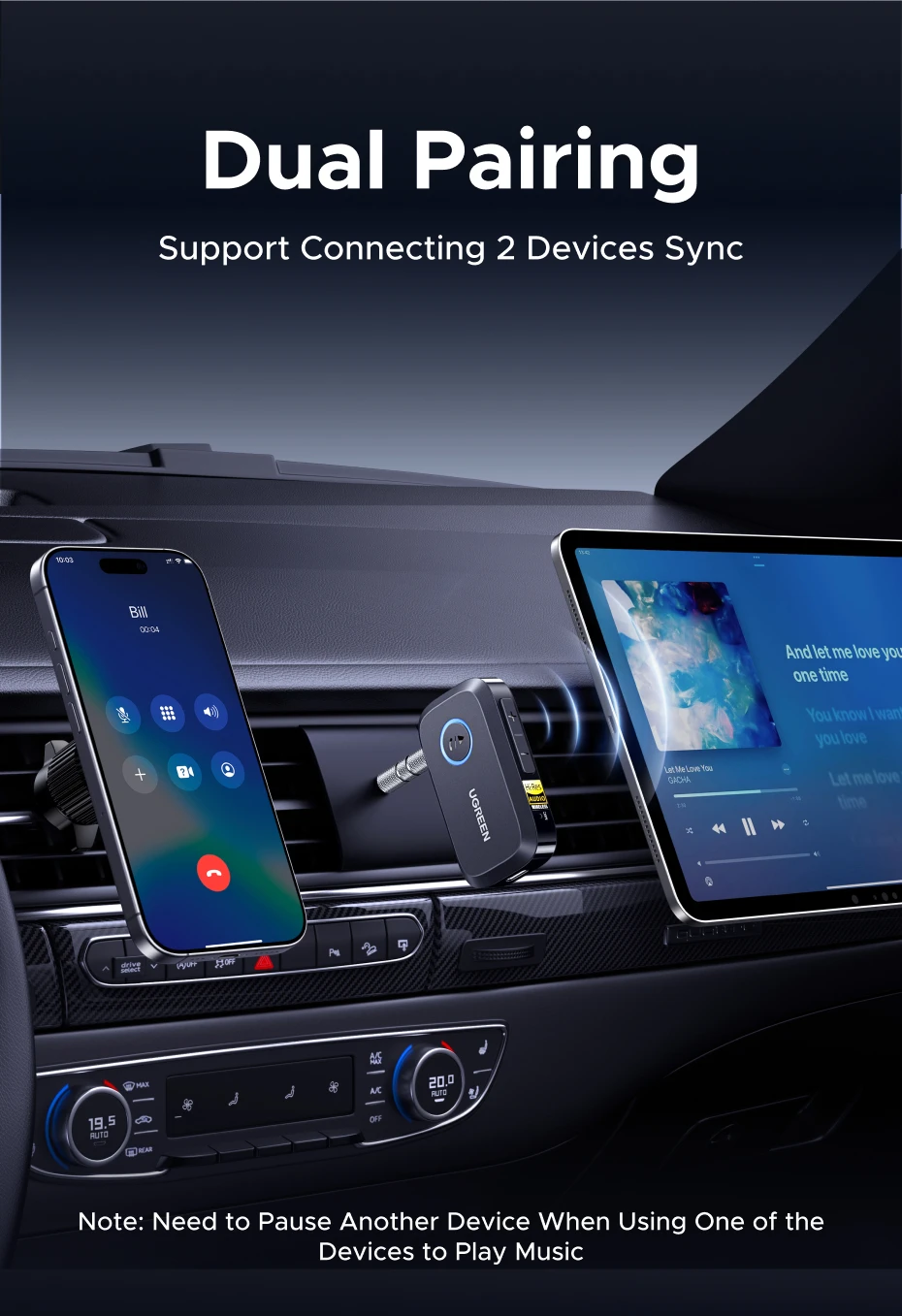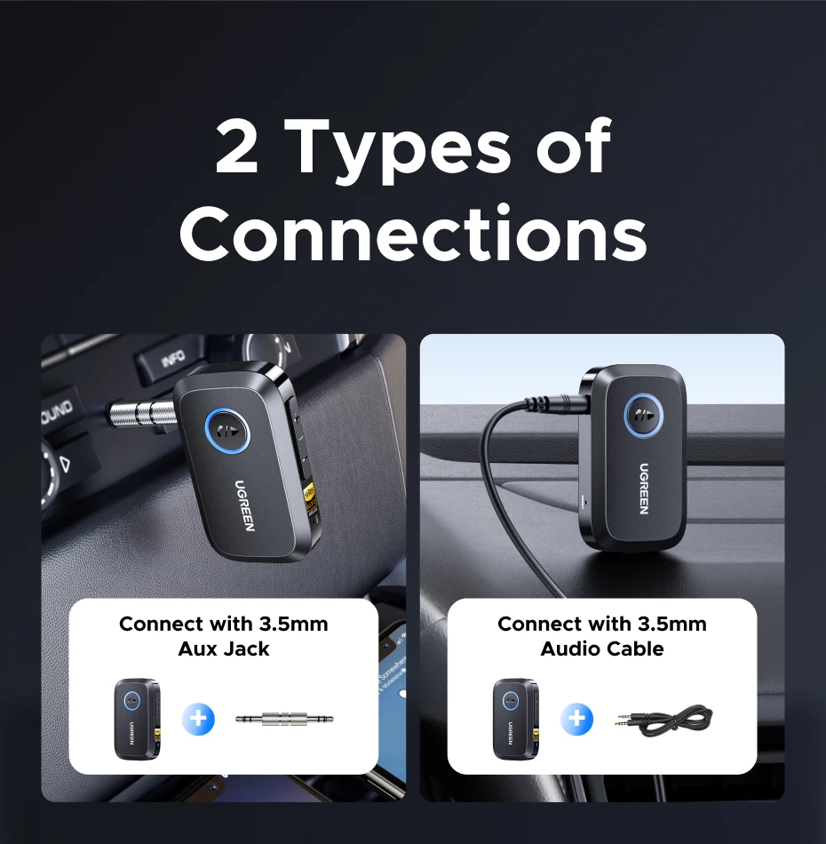 UGREEN Bluetooth 6.0 Receiver with LDAC, Hi-Res Wireless Audio Adapter 3.5mm AUX Receiver for Speakers/Wired Speakers/Stereo