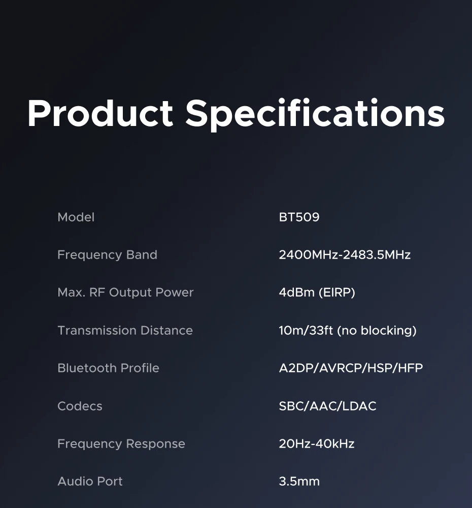 • Codecs: SBC/AAC/LDAC