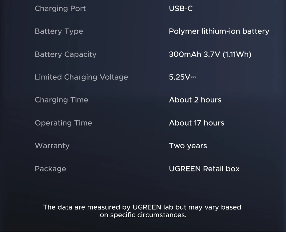 • Battery Capacity: 300mAh 3.7V