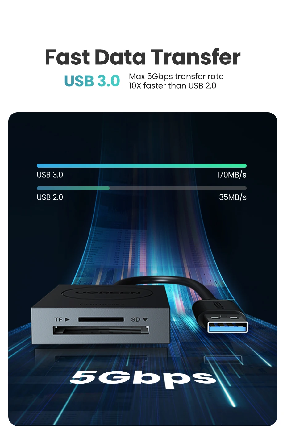 UGREEN 2 in 1 USB 3.0 SD/TF Card Reader — Read your memory cards with high-speed