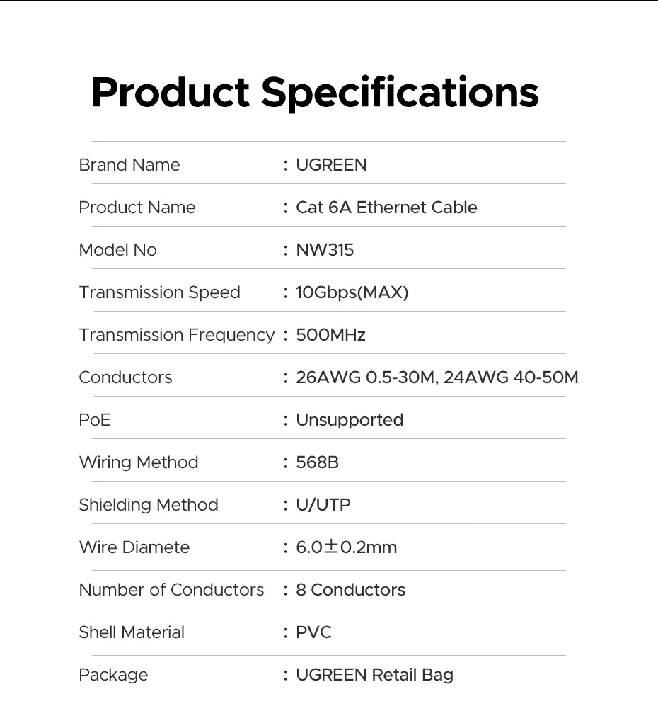 UGREEN CAT6A Ethernet Cable 10Gbps RJ45 Cable High Speed for Router Modem PC PS5 XBOX Laptop HUB NAS Lan Cable Patch Cable