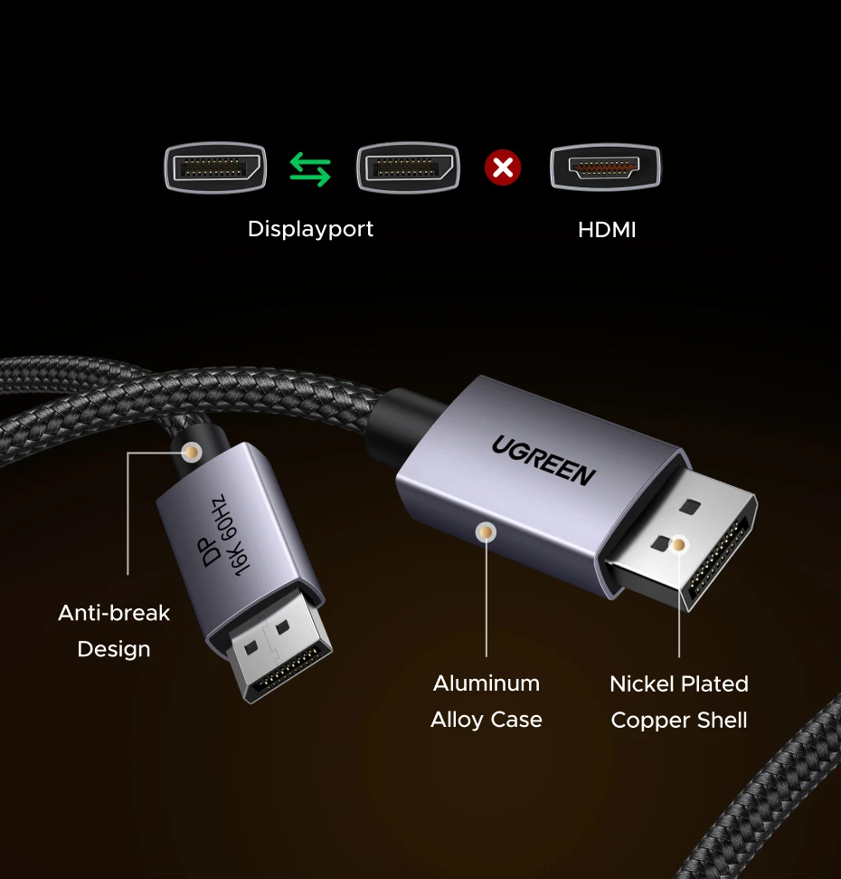 UGREEN DisplayPort Cable DP 2.1 16K 8K 4K 60Hz HDR Video Audio Cable for PC Laptop TV Monitor Projector Camera Display Port