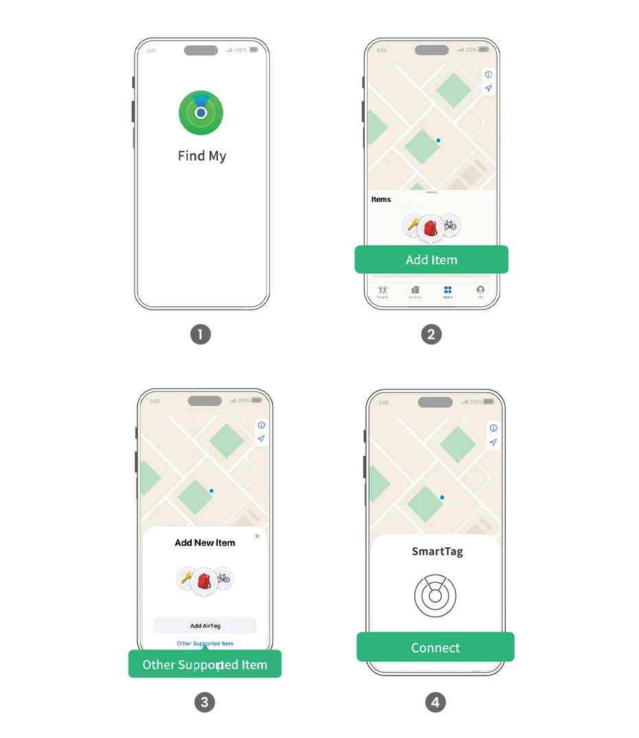 *SmartTrack connects to devicesonly via Bluetooth and reports its location through Apple’s Find My network.*
