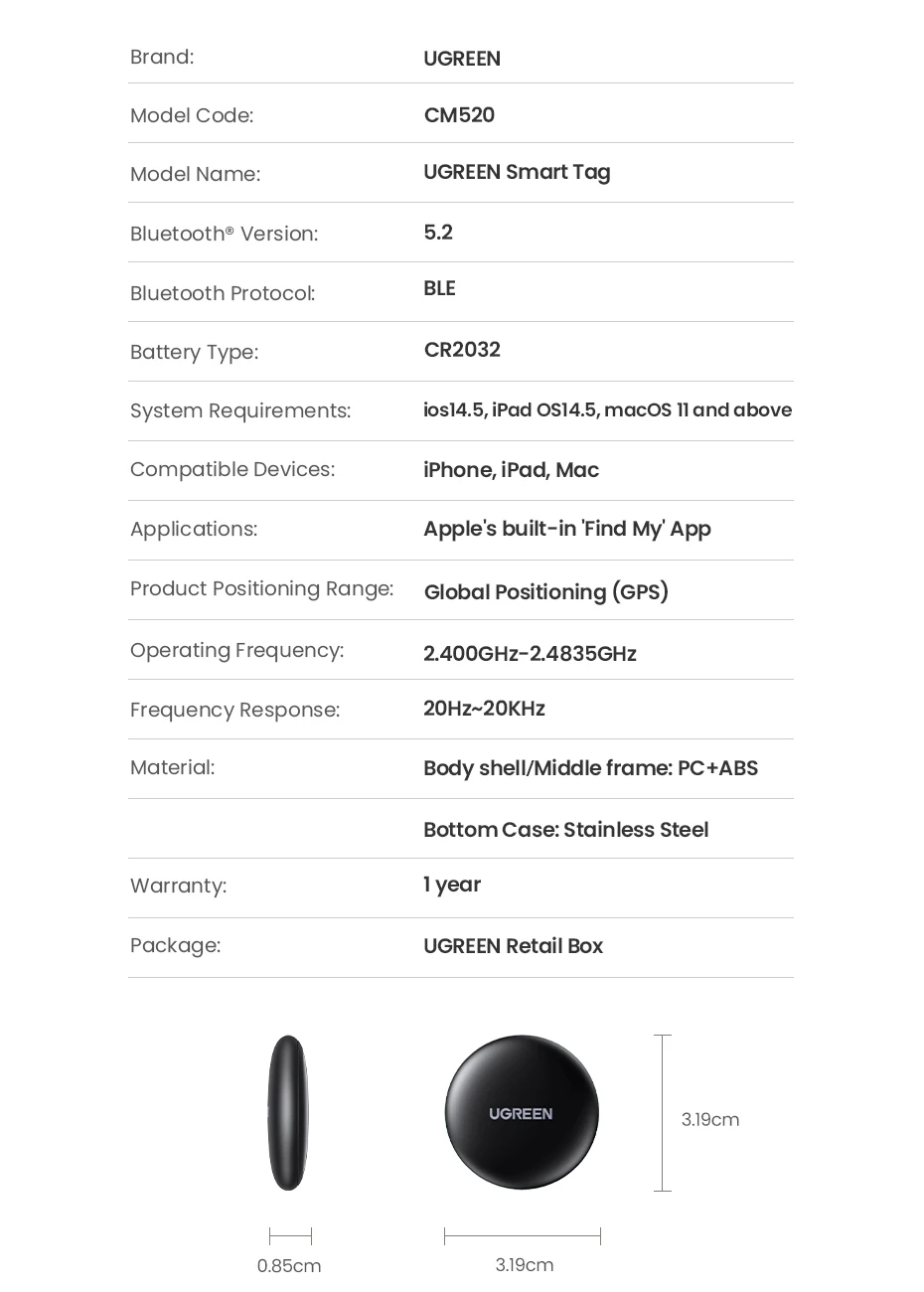 UGREEN Finder Security SmartTrack Link Smart Tag With Apple Find My Key Bluetooth GPS Tracker For Earbud Luggage MFi Finder IOS