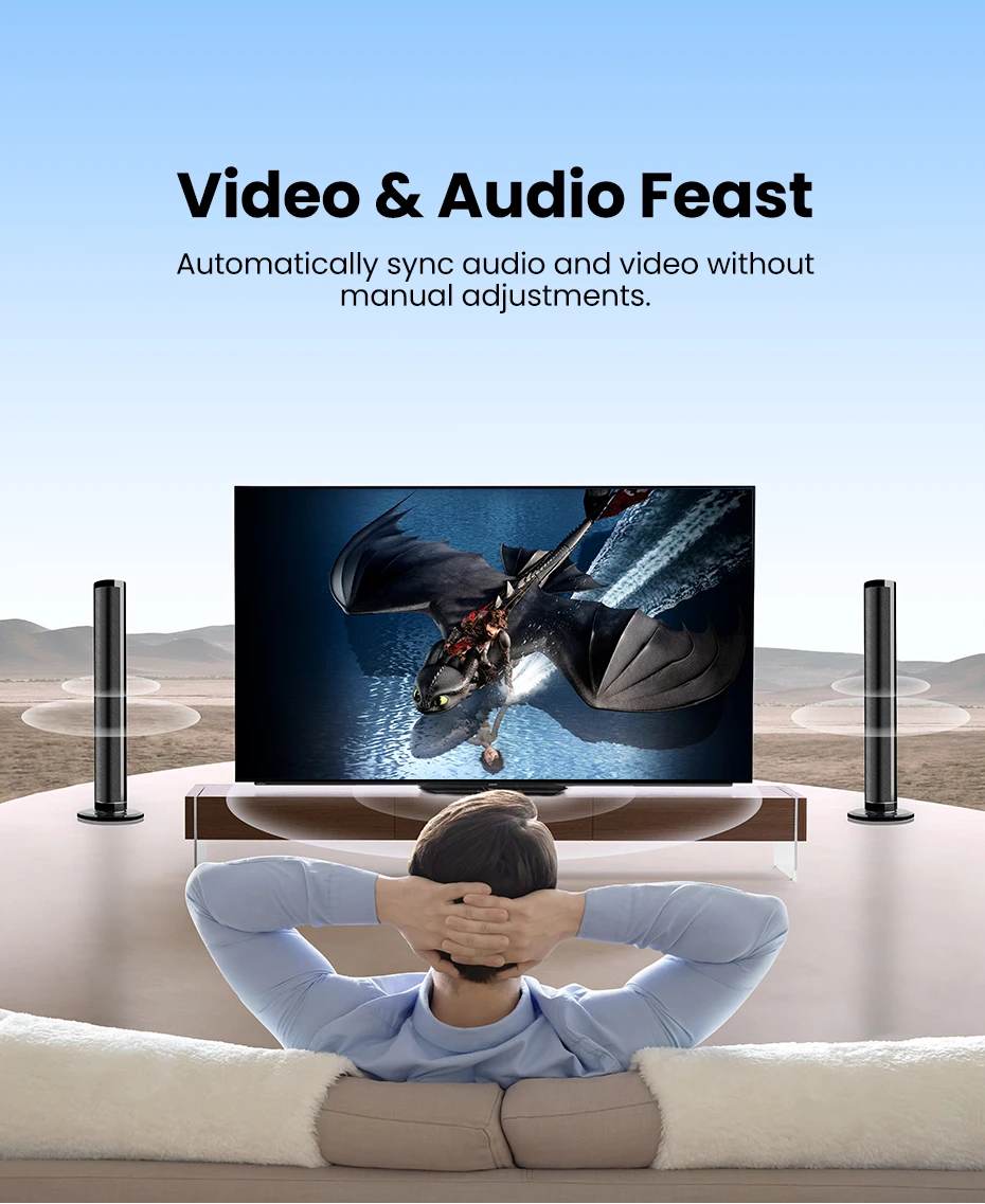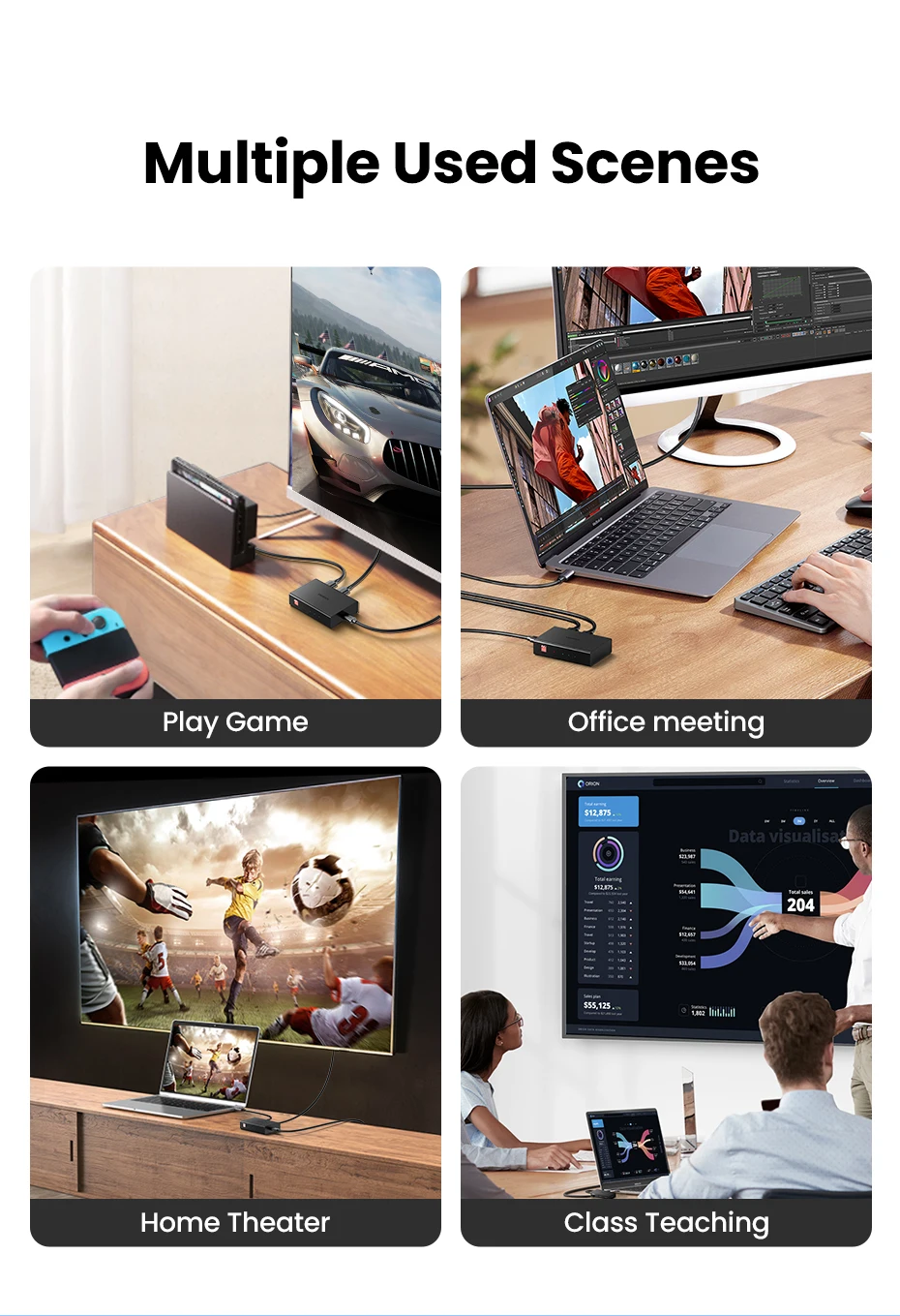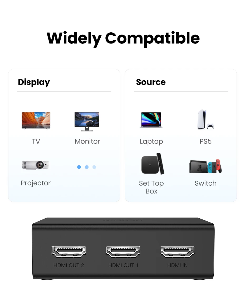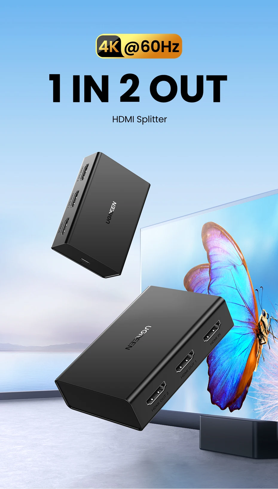 Transform your viewing experience with the UGREEN 1 in 2 Out HDMI Splitter! With just one source, you can now enjoy your favorite content on dual TVs with minimal hassle at the same time. No more swapping HDMI cables, just watch on multiple TVs in different rooms, or in the same room! (*Note: Only Mirror/Duplicate Screen, Not Extend Mode.) This dual HDMI adapter for 2 monitors will duplicate the source to the dual displays. It can’t be used to extend a desktop for PC or a laptop.