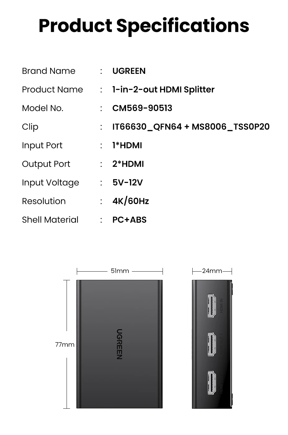UGREEN 1 in 2 out HDMI Splitter for Dual Monitors