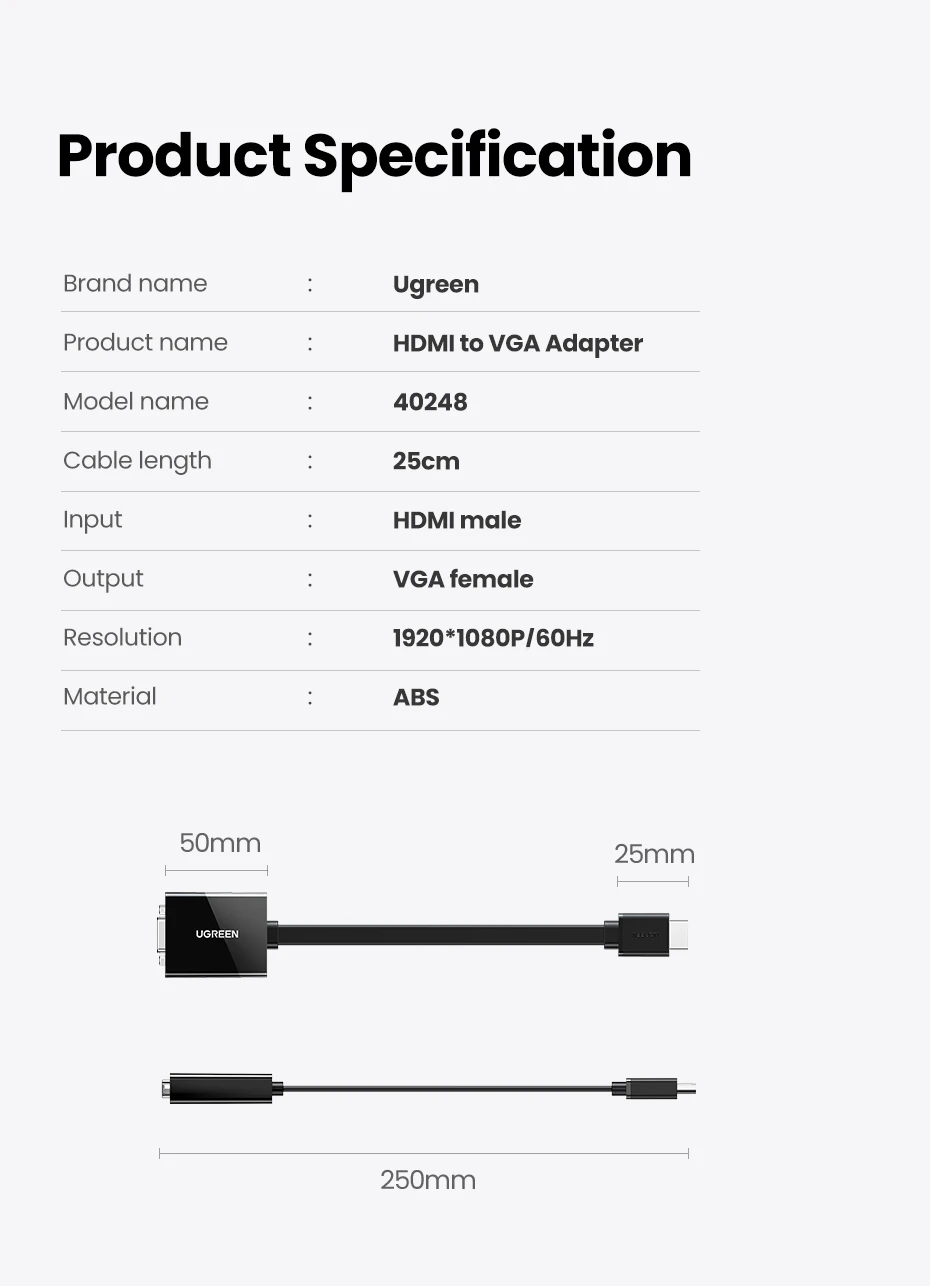 • Feature 4: HDMI Male to VGA Female