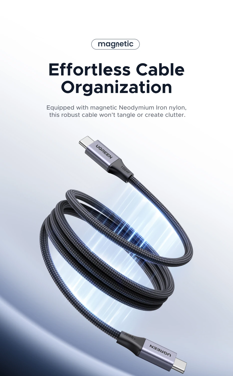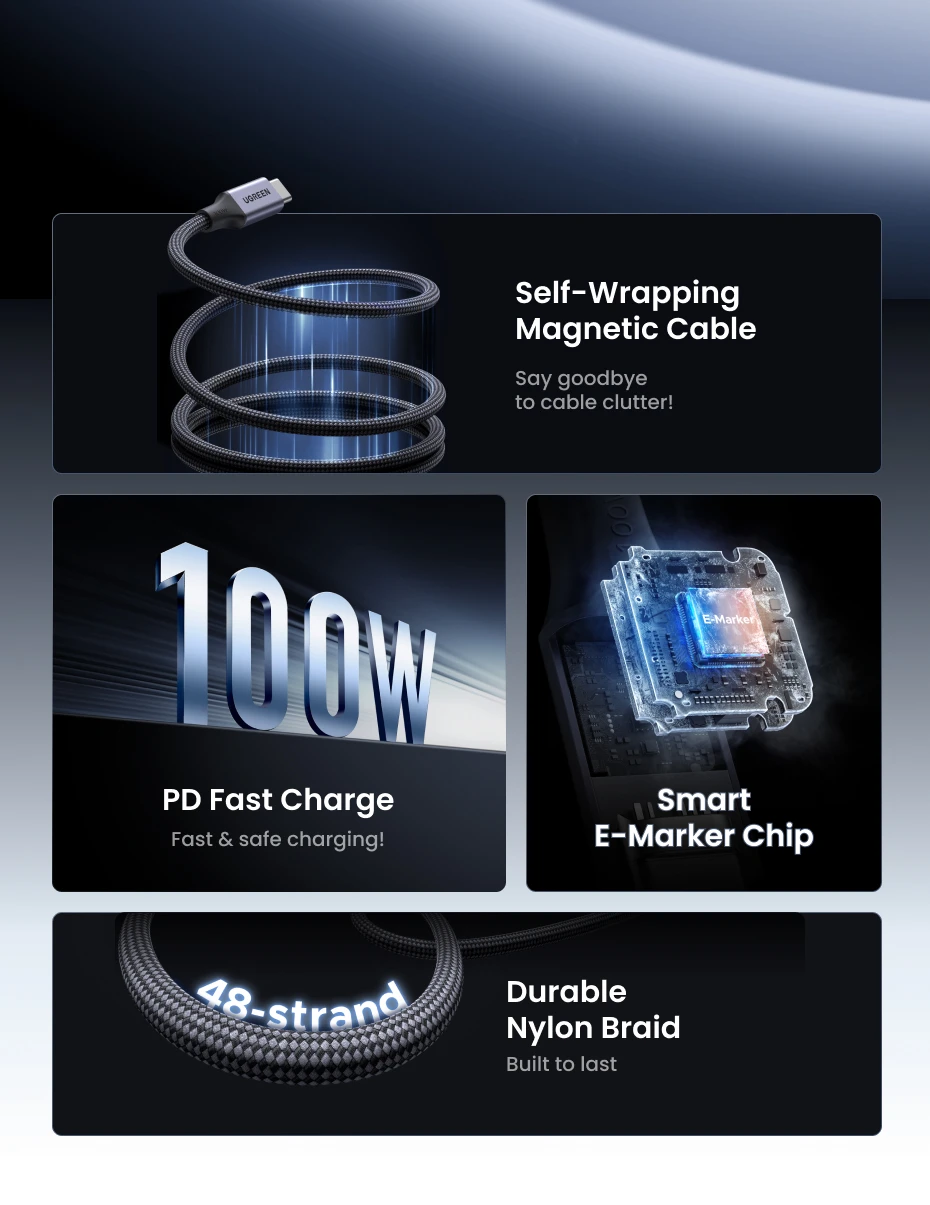 UGREEN Magnetic USB C to USB C Cable PD100W Type-C Cable for MacBook Laptop iPhone 17 16 Smasung S25 24 iPad Fast Charger Cord