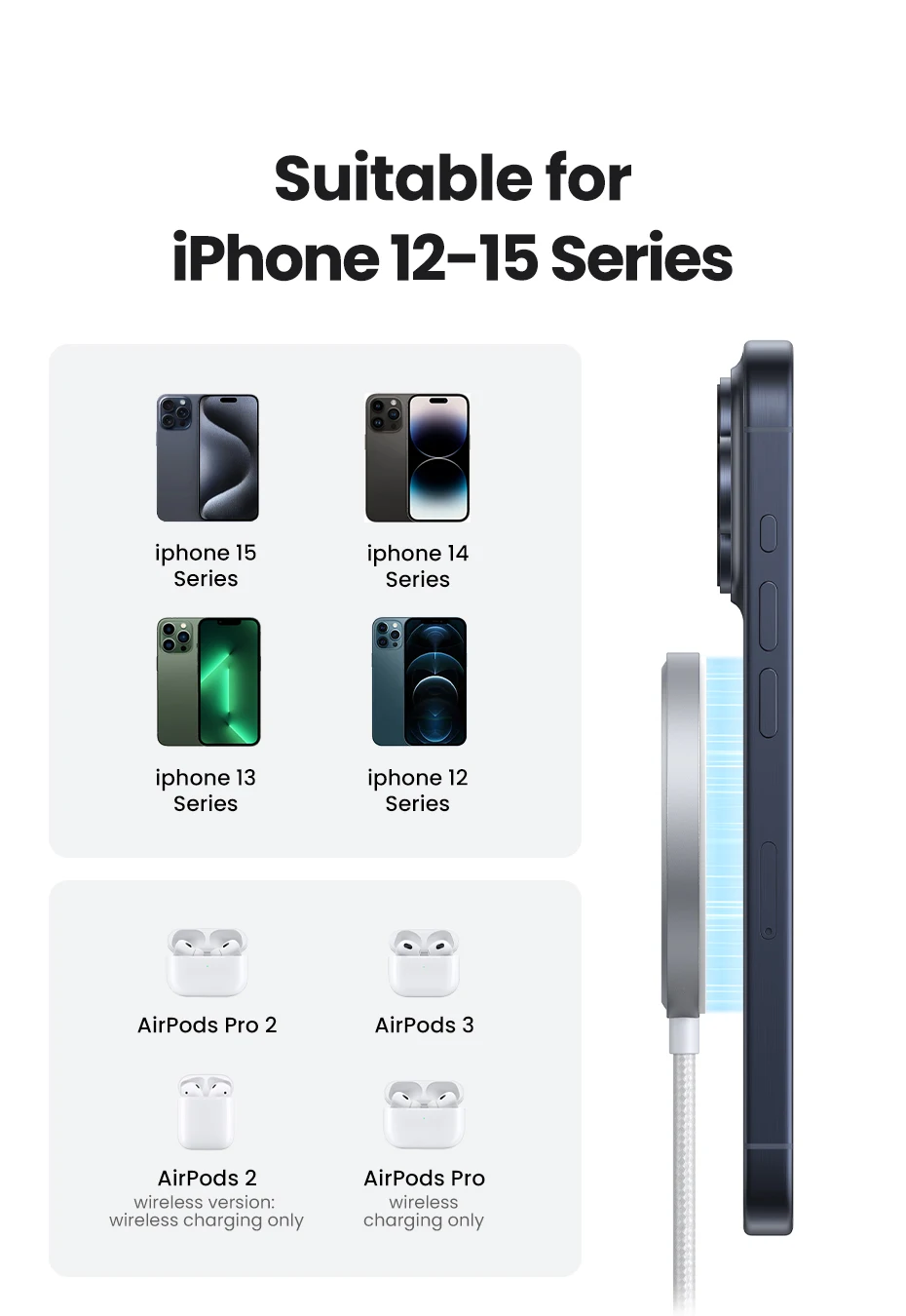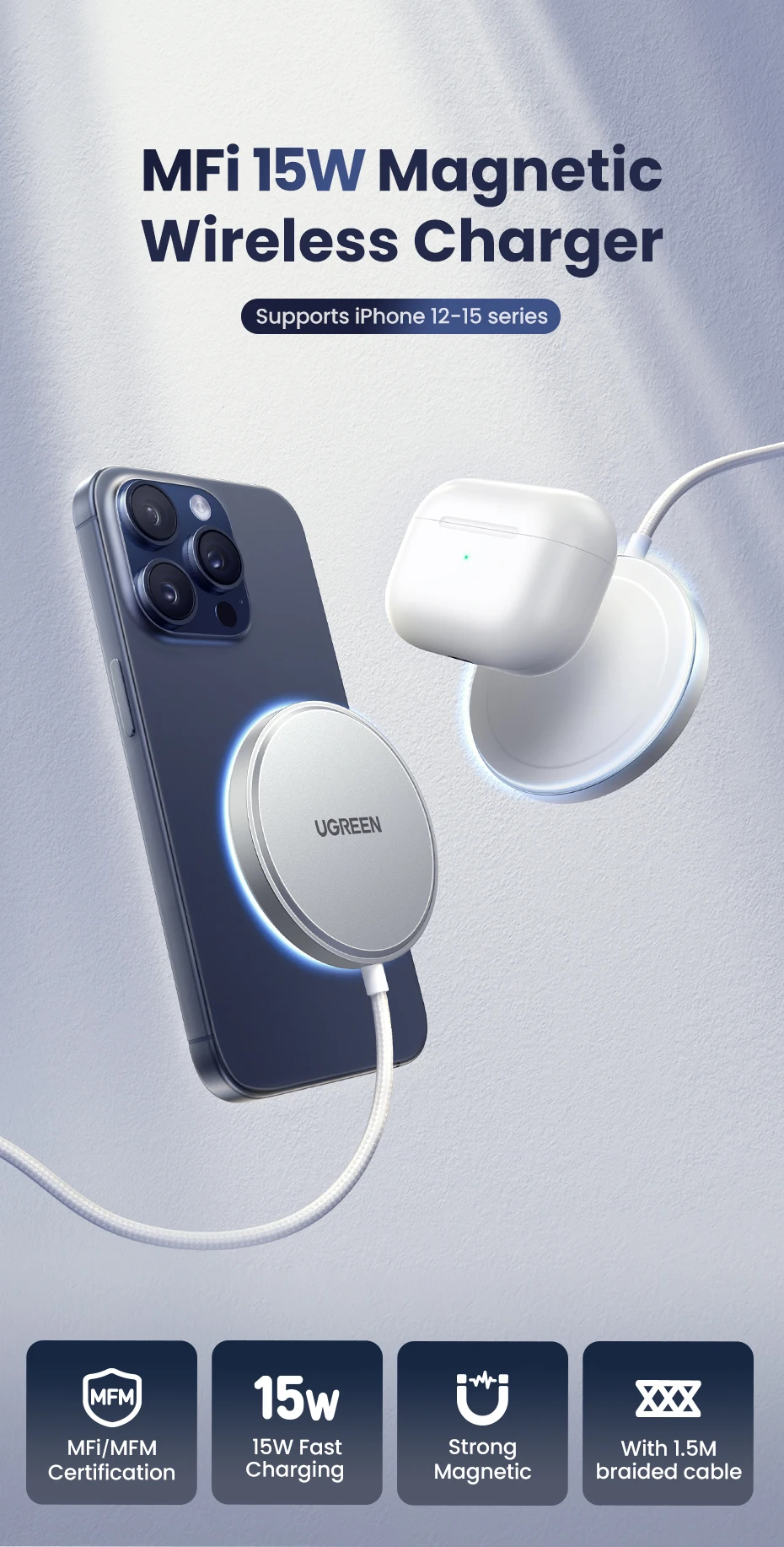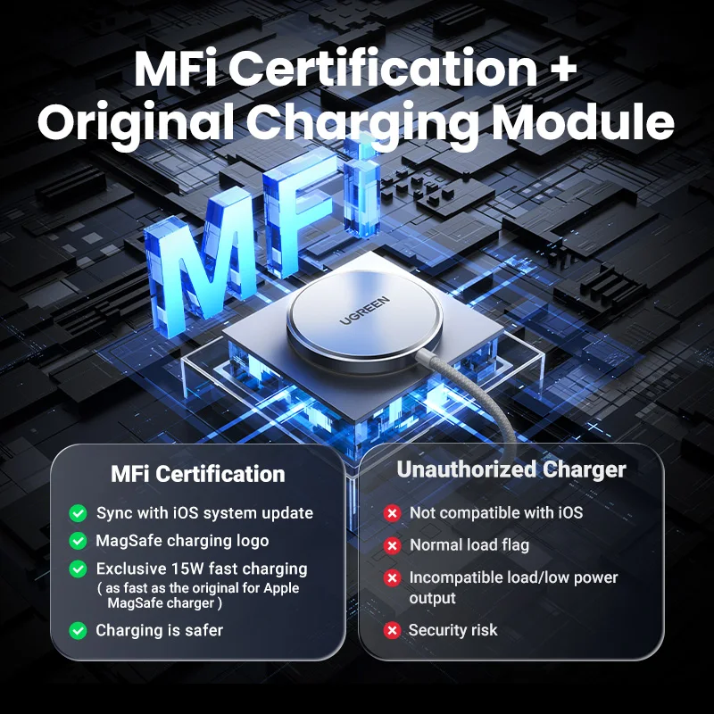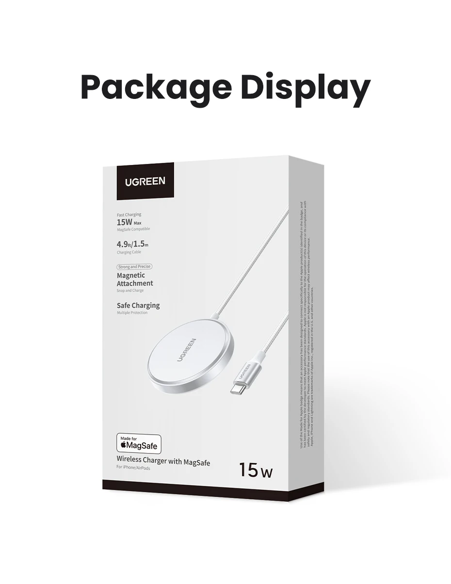 UGREEN MFi Magsafe Wireless Charger Pad 15W Fast Charging For iPhone 15 14 13 12 Pro Max For AirPods Pro 2 Magnetic Chargers