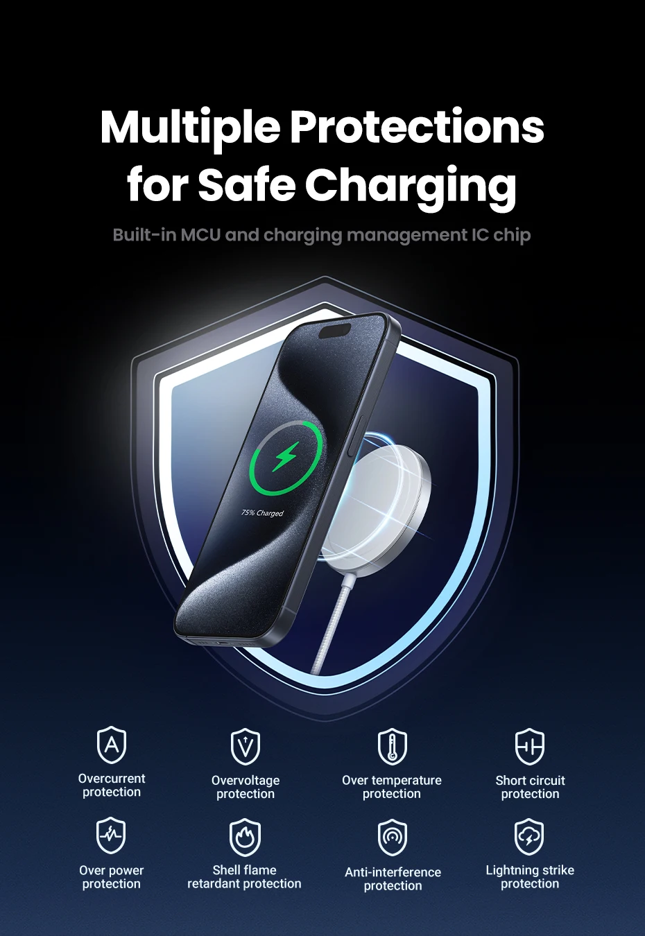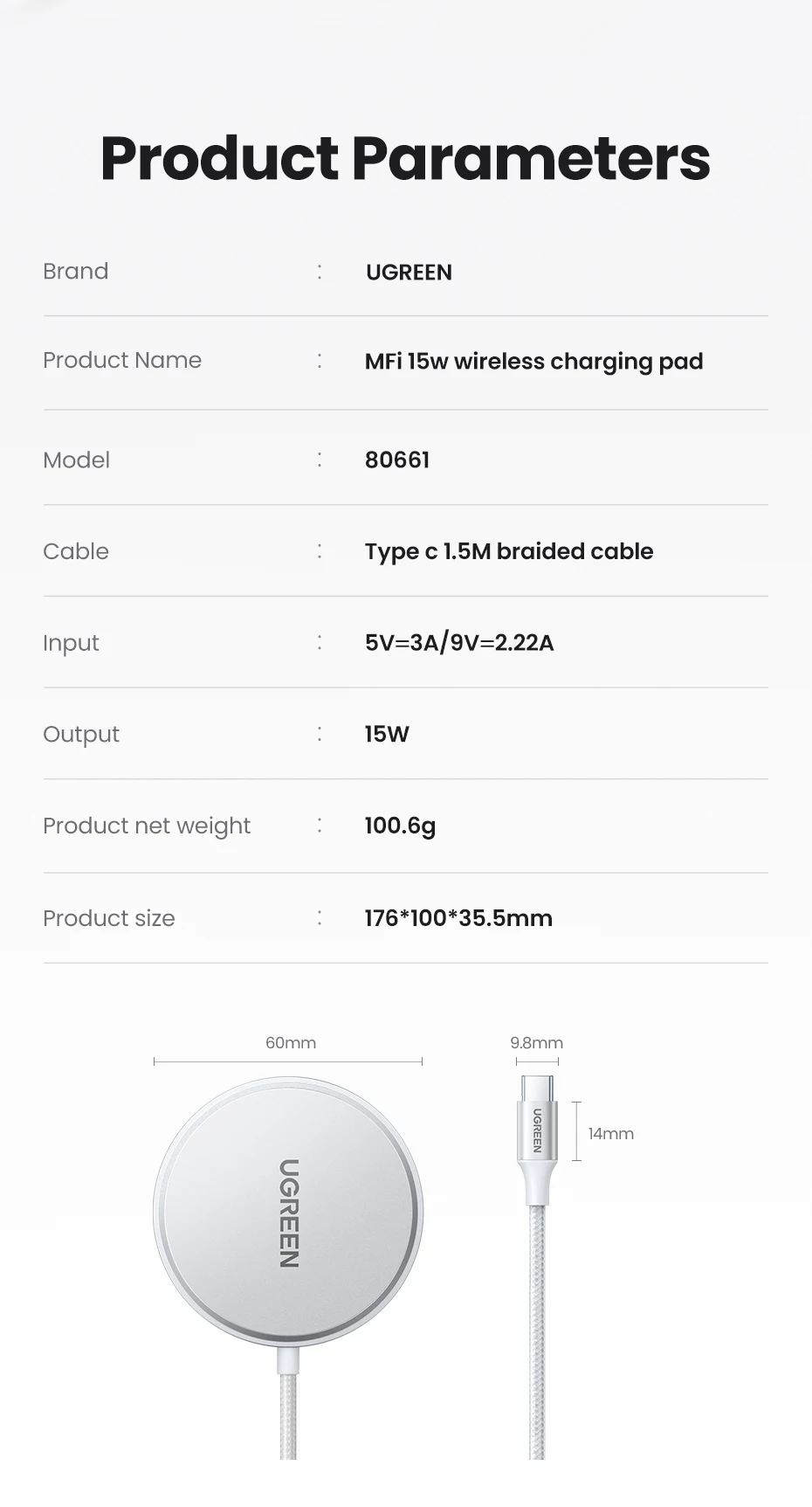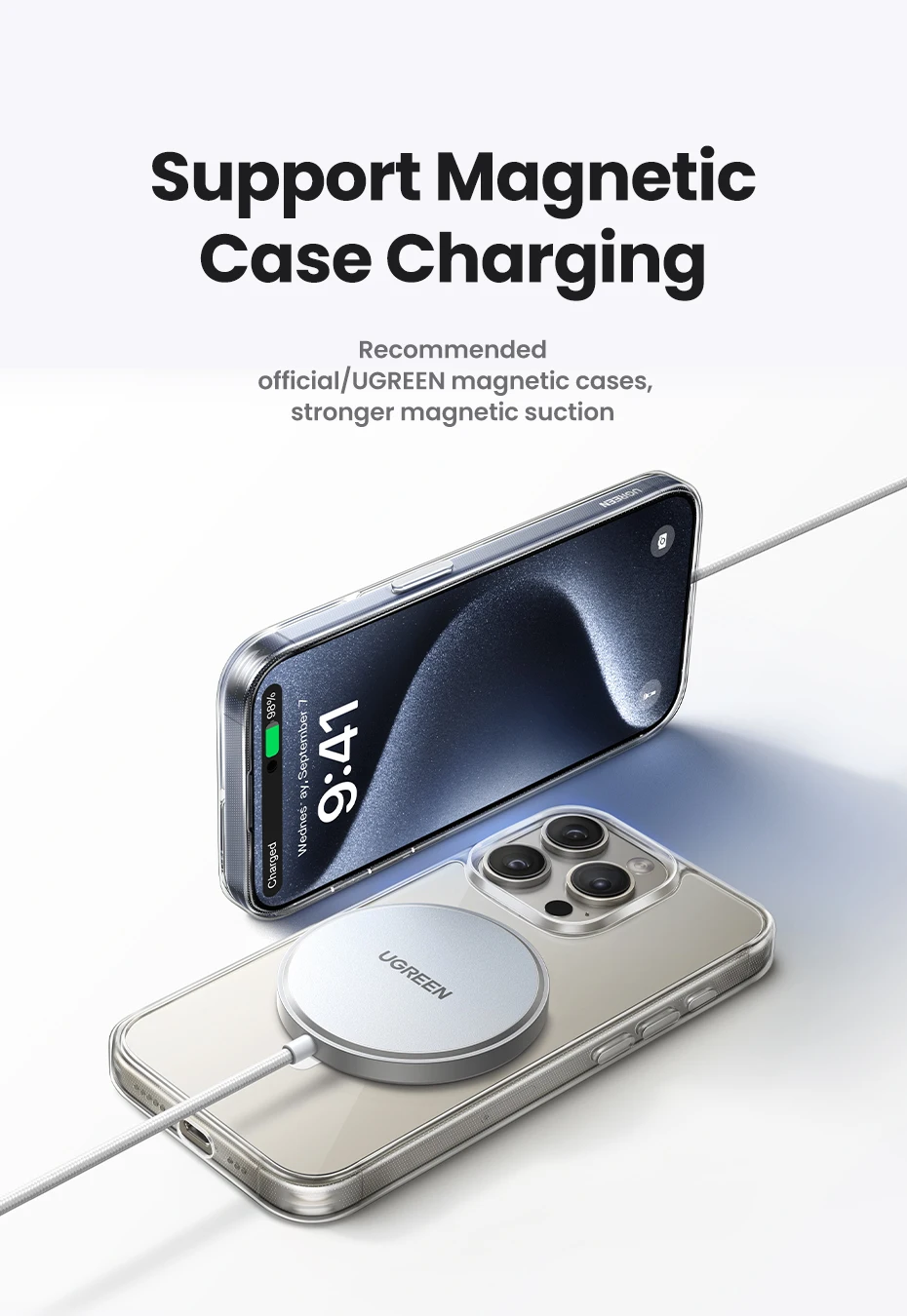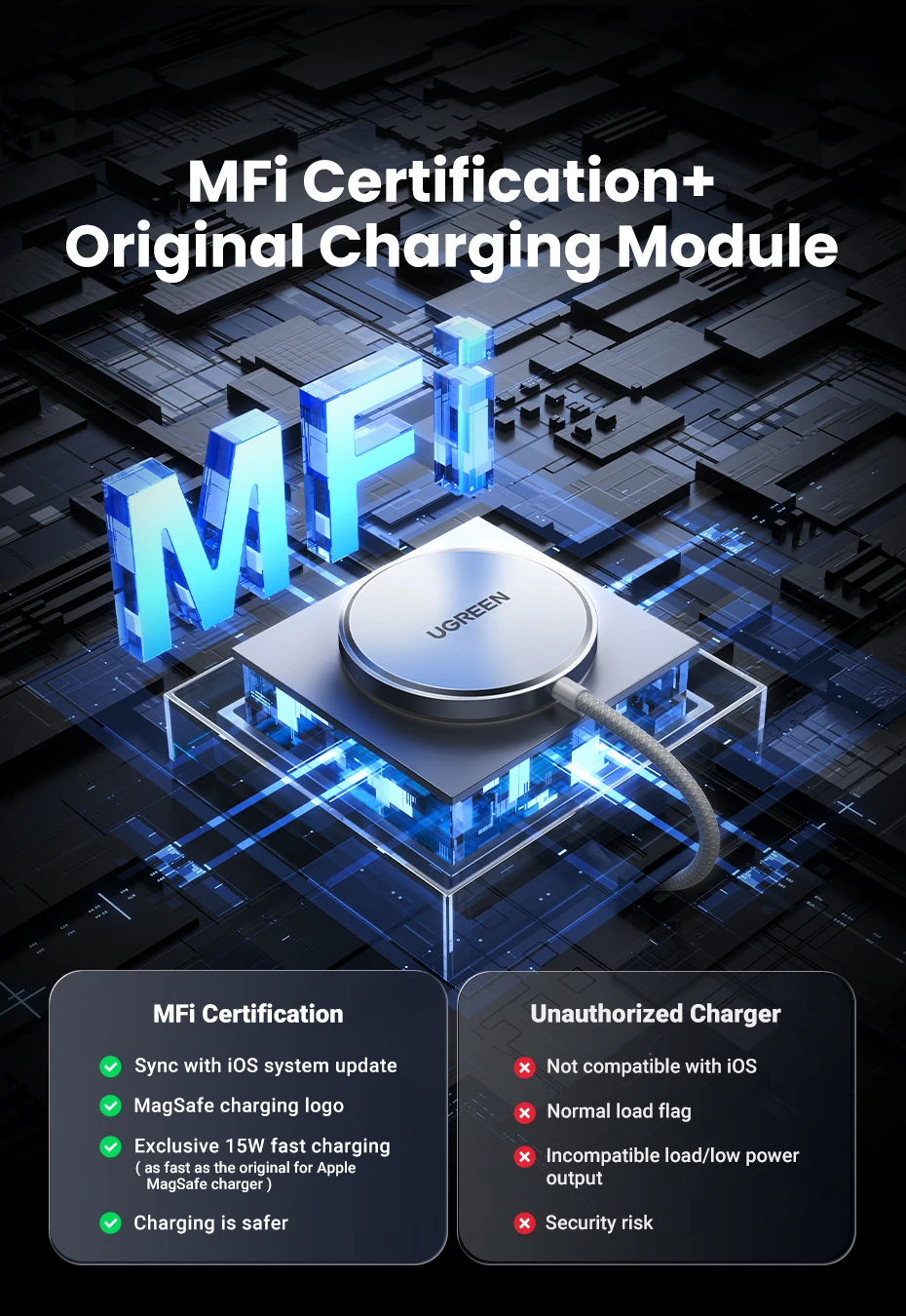 UGREEN MFi Magsafe Wireless Charger Pad 15W Fast Charging For iPhone 15 14 13 12 Pro Max For AirPods Pro 2 Magnetic Chargers