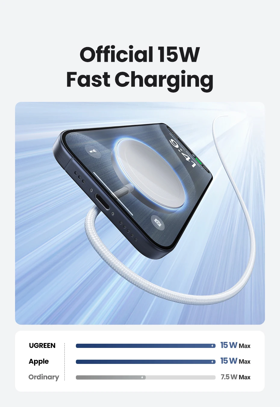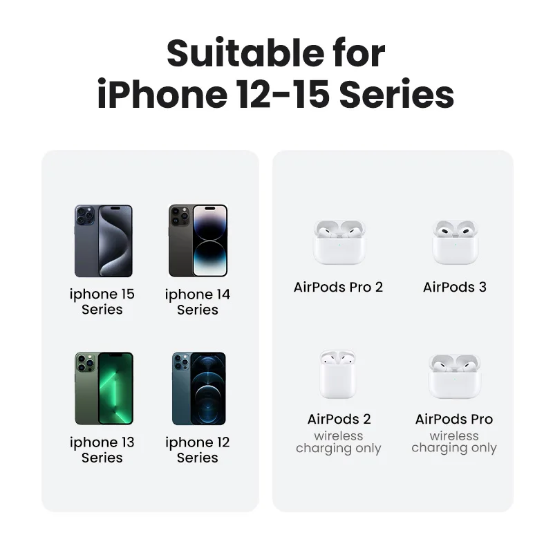 • Output 1: 15W Max for iPhone 15/iPhone 14/iPhone 13/iPhone 12 series