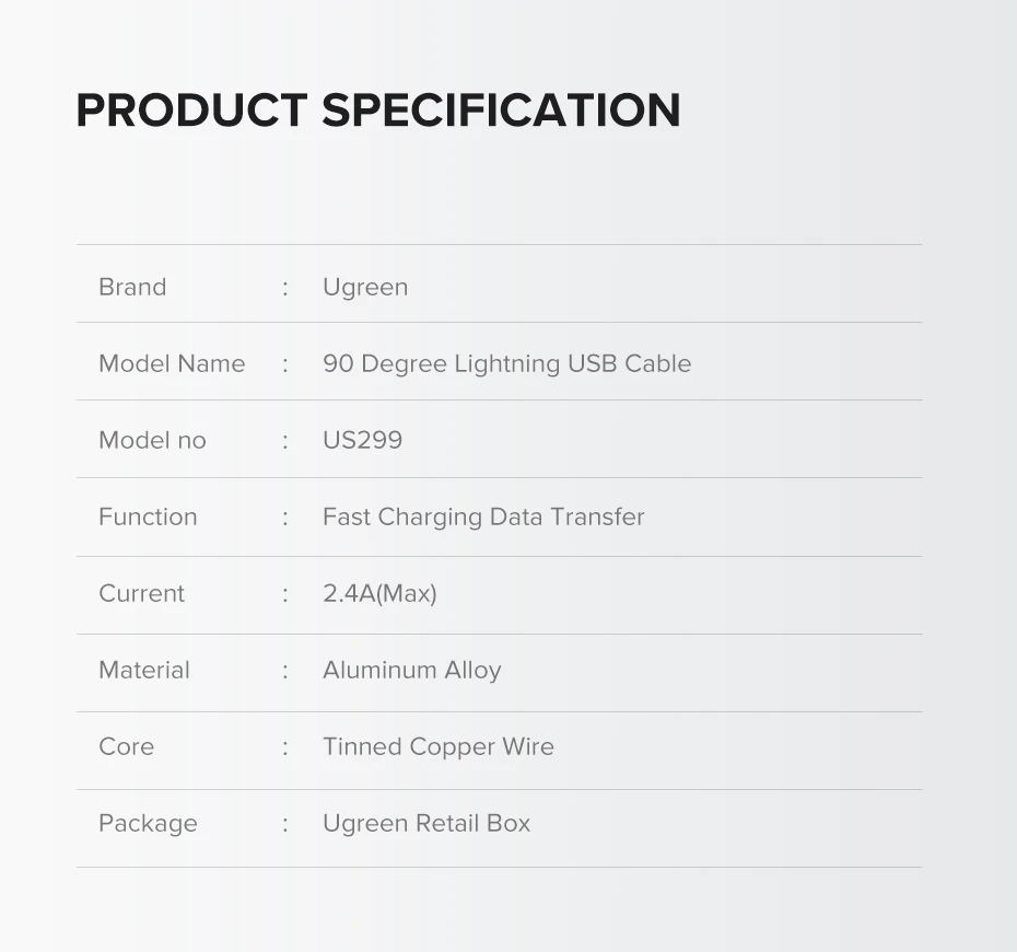 - Product Name: USB to Lightning Cable