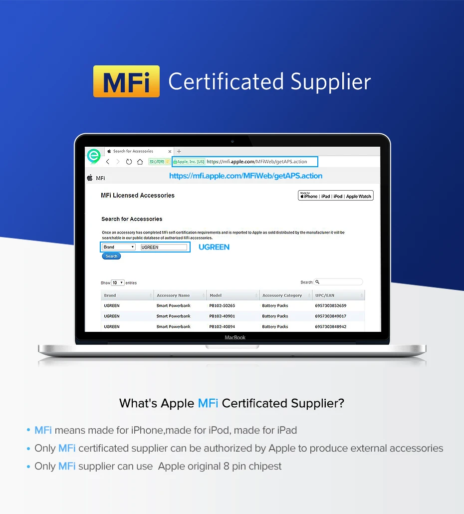 Ugreen MFi Cable ✔ | Non-MFi Cable ✖ | |