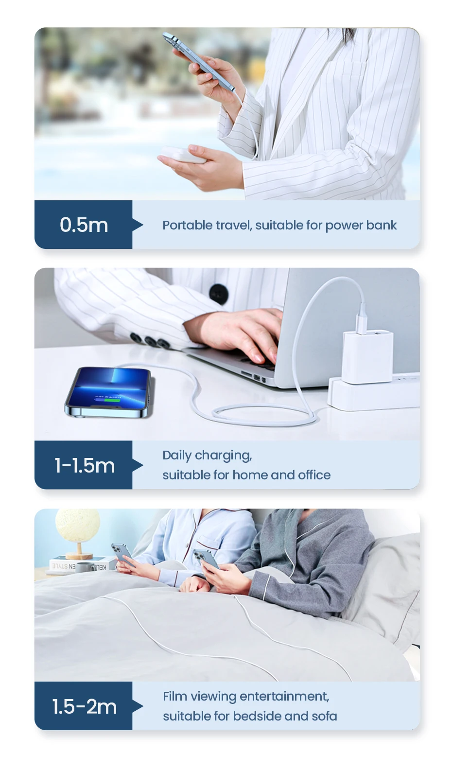 Different lengths to meet your charging needs in different situations