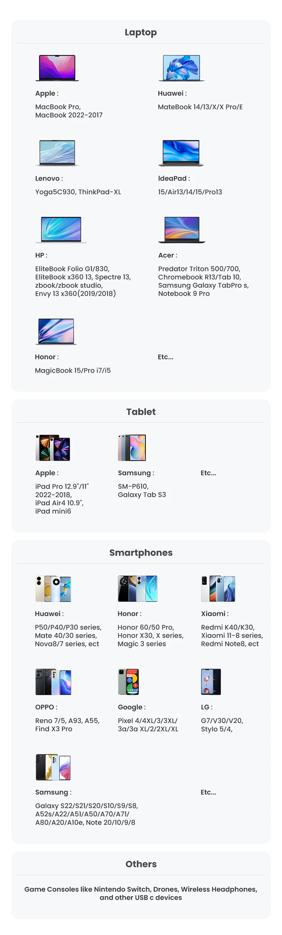 • Function 8: for Samsung Huawei Xiaomi Smart Phones