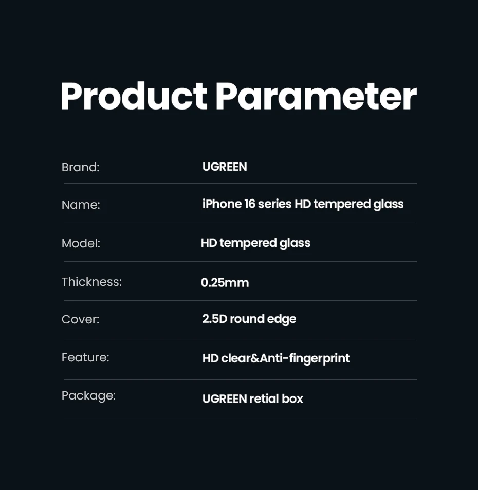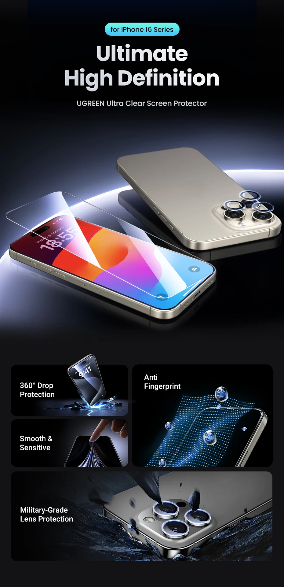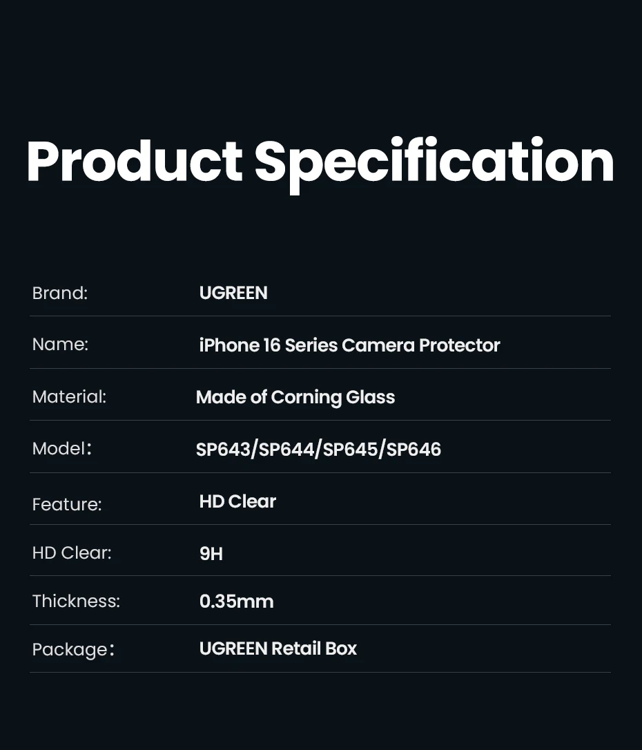 UGREEN Screen Protector For iPhone 16 Pro Full Cover Tempered Glass For iPhone 16 Plus Pro Max Camera Lens Protectors