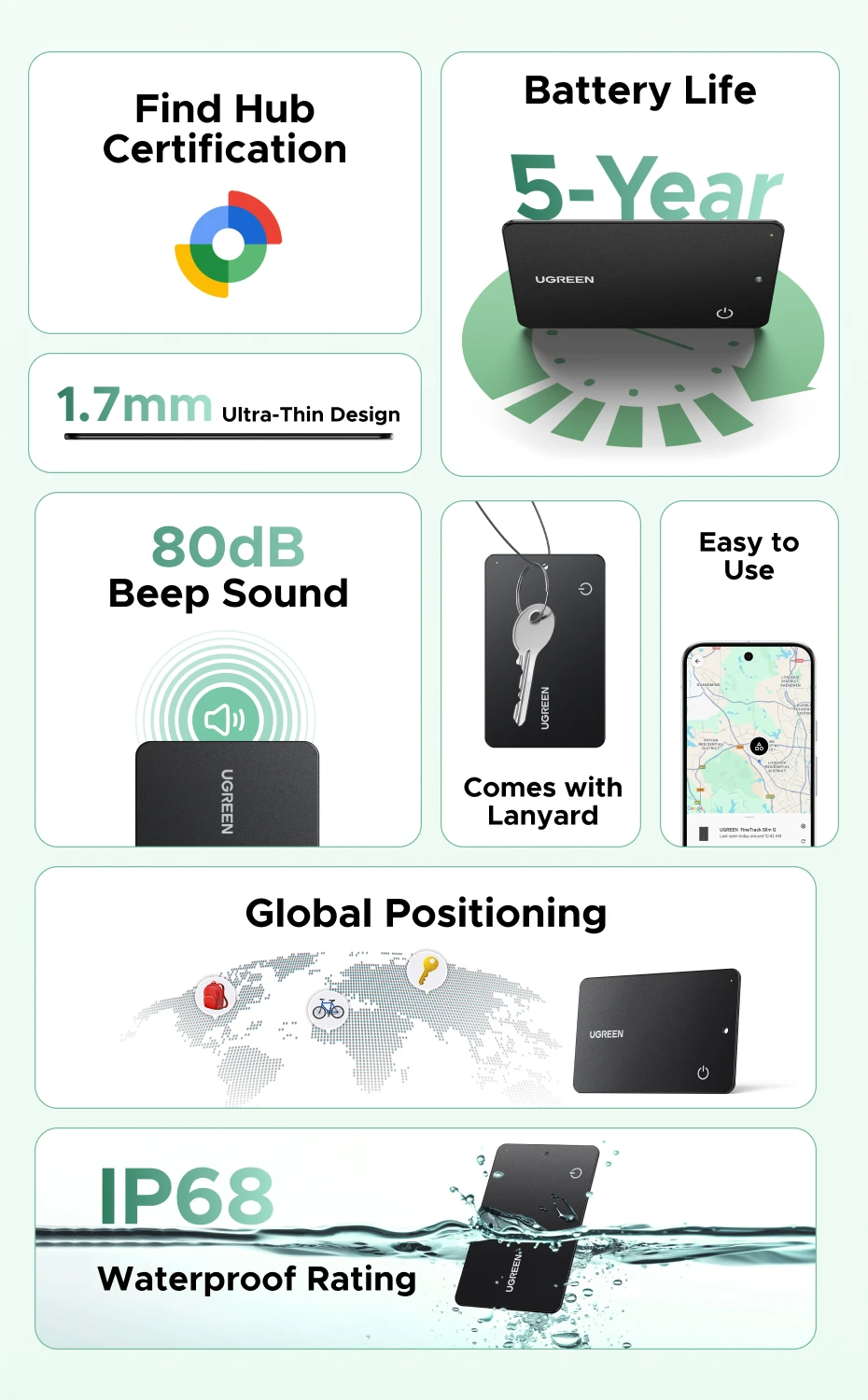 UGREEN Smart Tracker for Google Android Devices (Android Only) Air Tracker Tags,with Find Hub App Item Finder Smart Tag