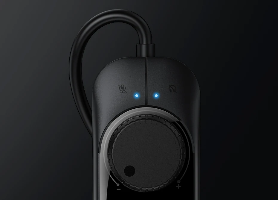 – Indicator light: Two blue indicator lights (one for headphone and one for micphone)
