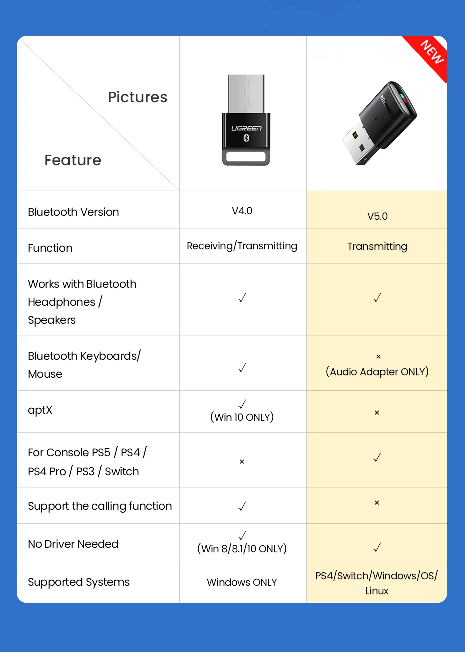 UGREEN USB Bluetooth 5.0 Transmitter Audio Adapter For Airpods PC Computer PS4 Pro Nintendo Switch Bluetooth Adapter TV Mode