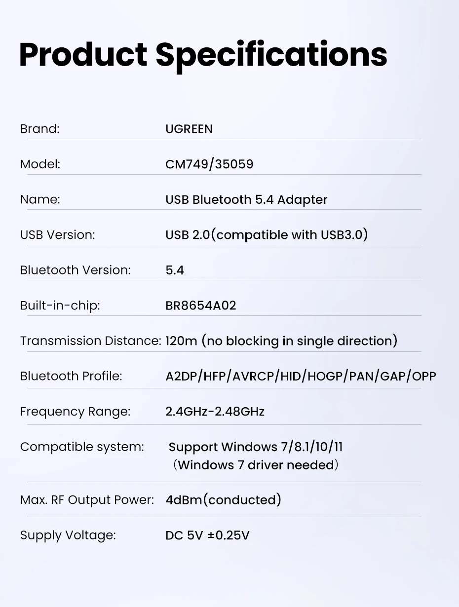 | Compatible Systems - Bluetooth5.0 | Windows 7/8.1/10/11 |