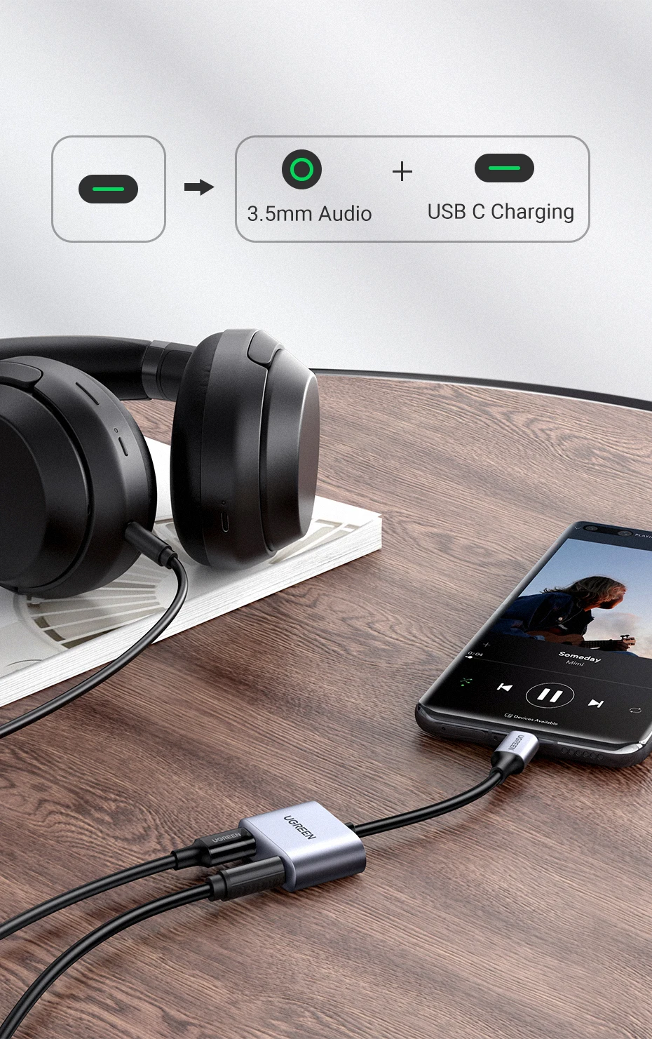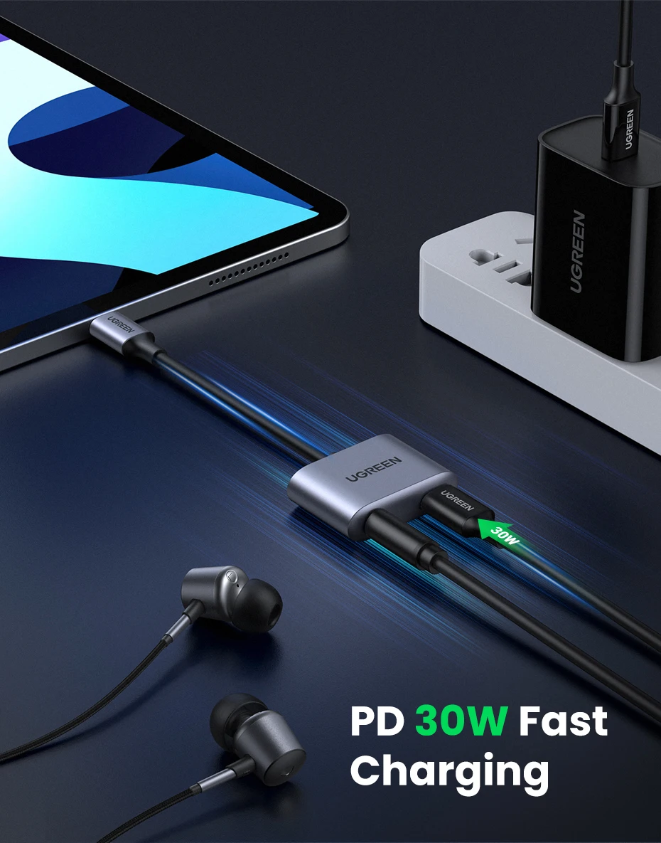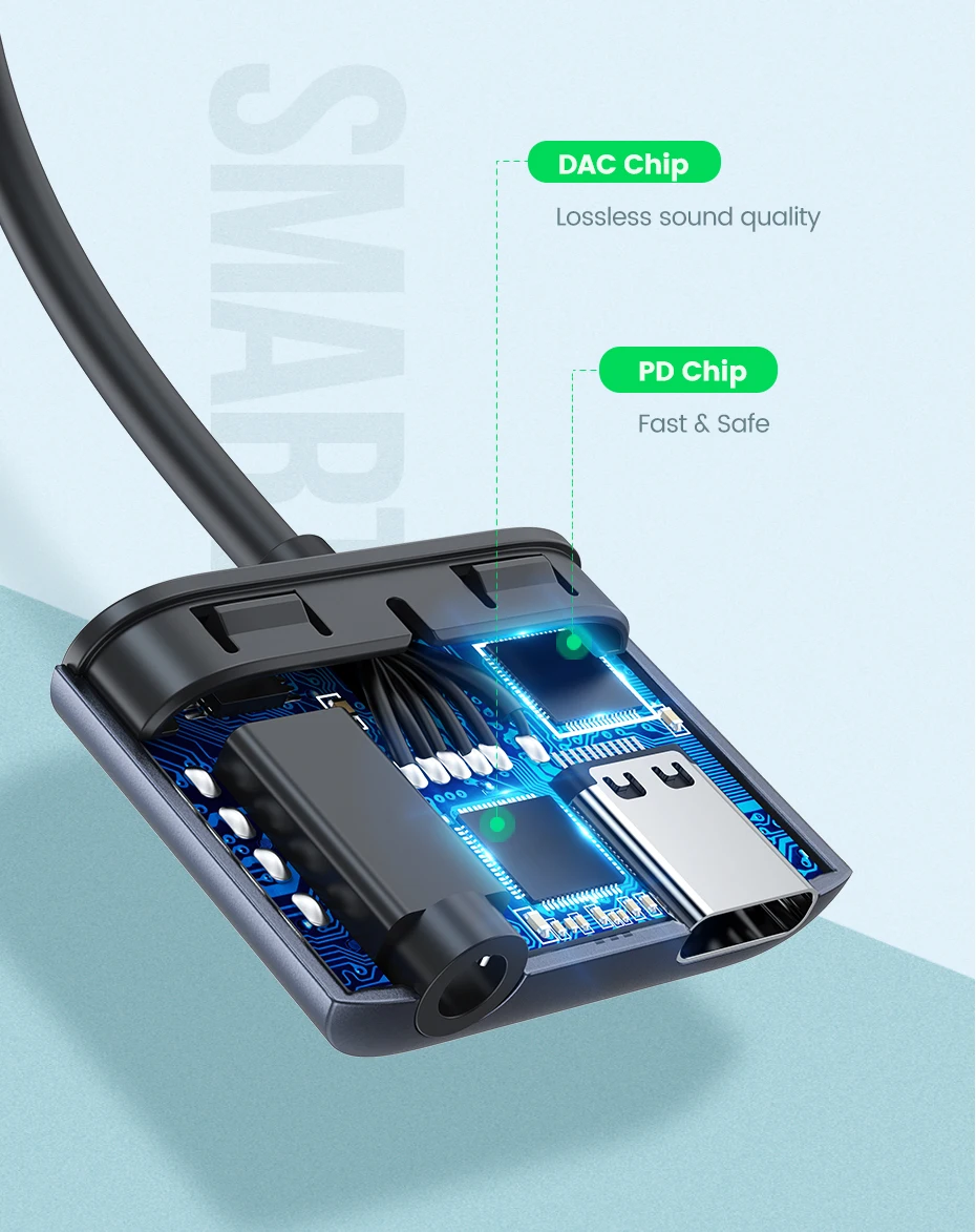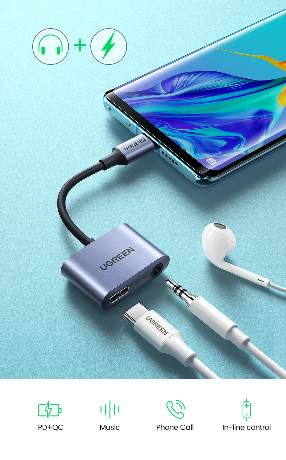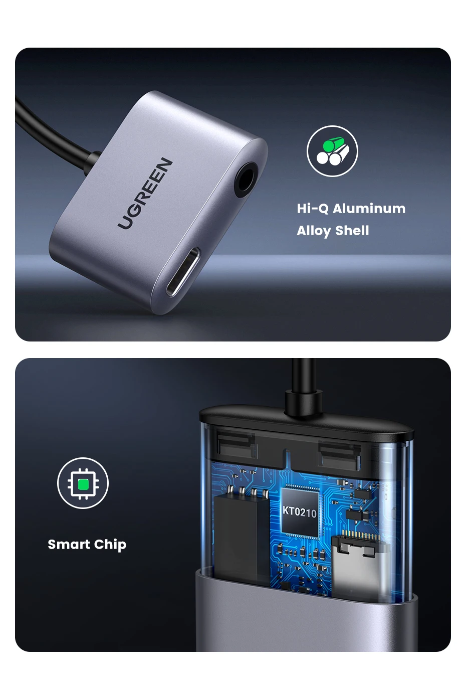 UGREEN USB C to AUX Cable Adapter Type C 3.5mm AUX Earphone Converter DAC Chip PD QC Charging For Huawei iPad Pro Samsung Pixel