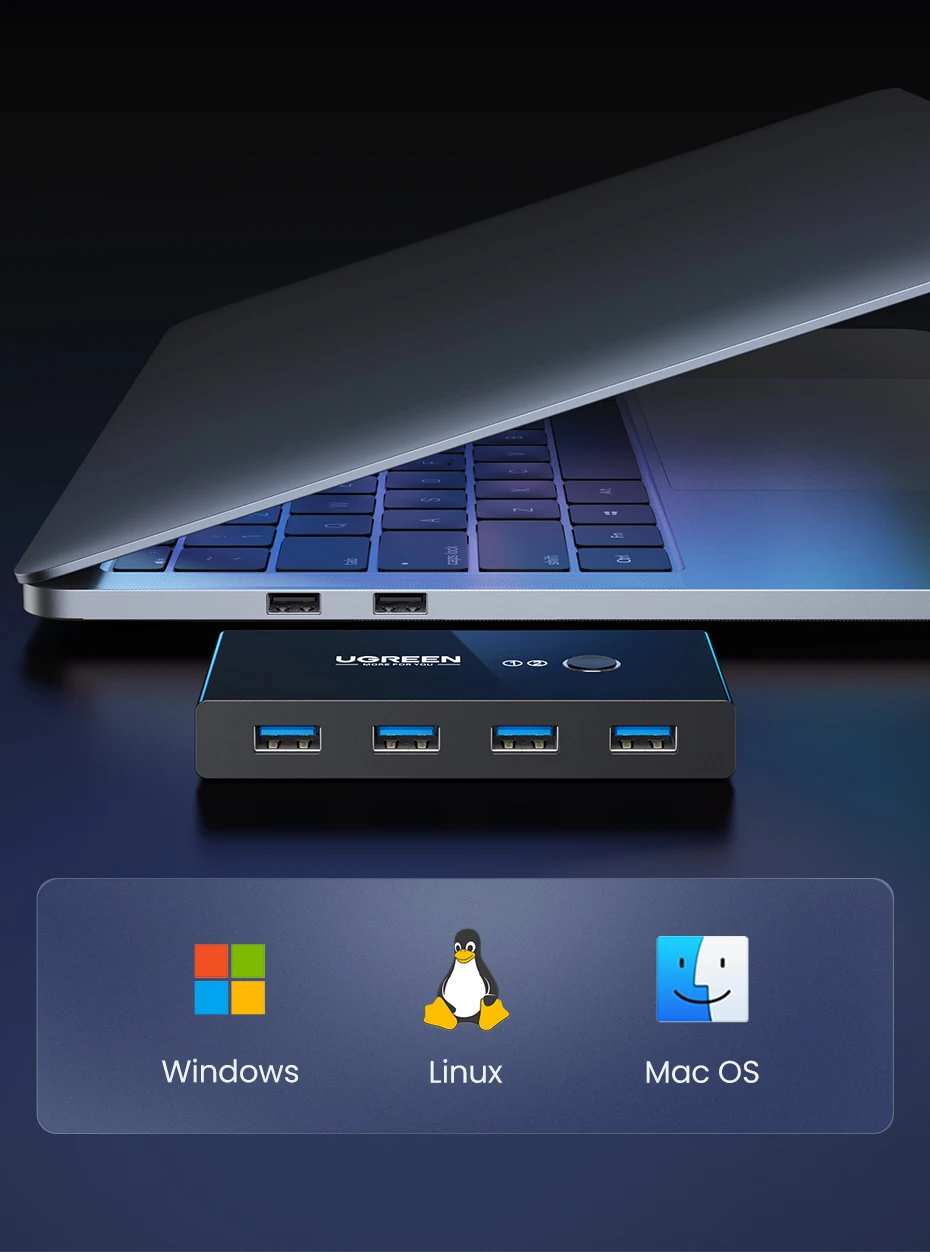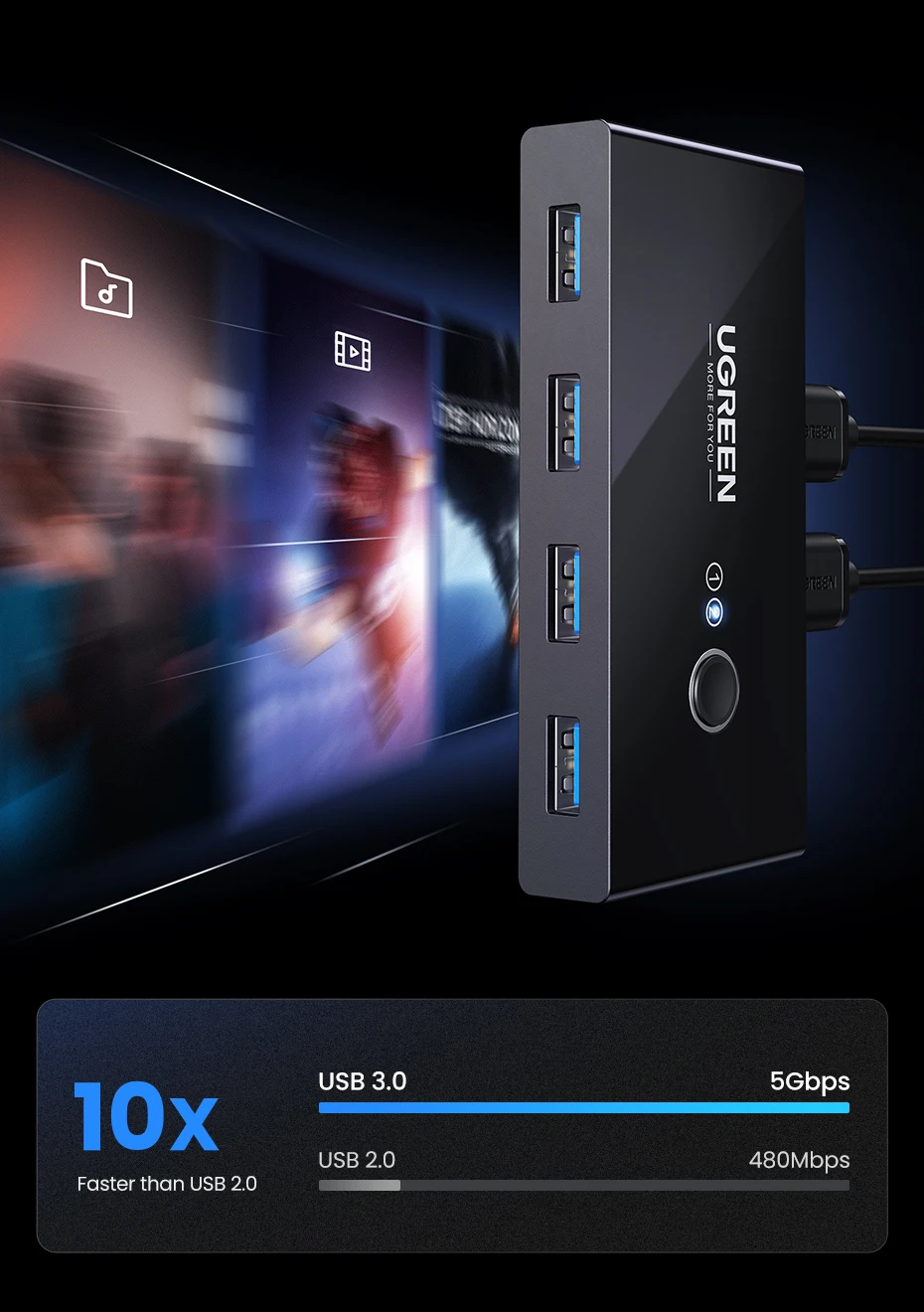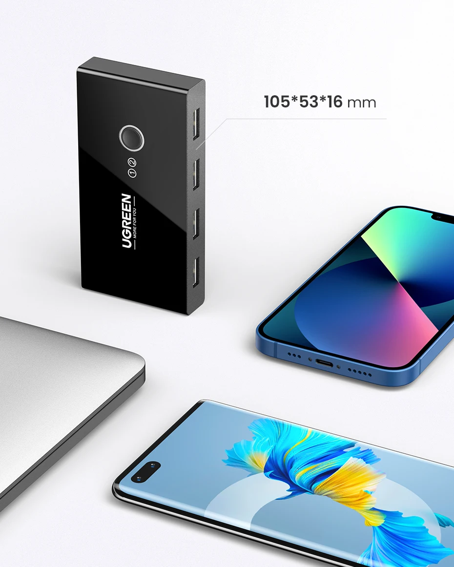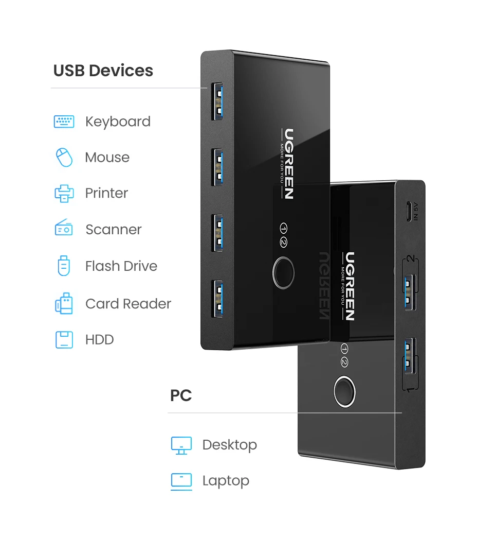 • UGREEN 4Port USB Switch is an excellent choice to share 4 USB devices between two Comptuers;