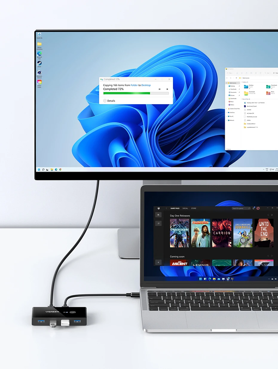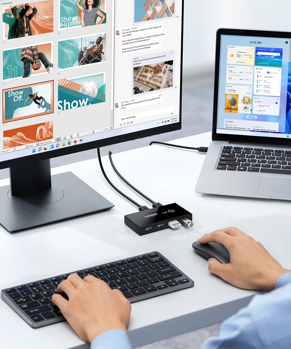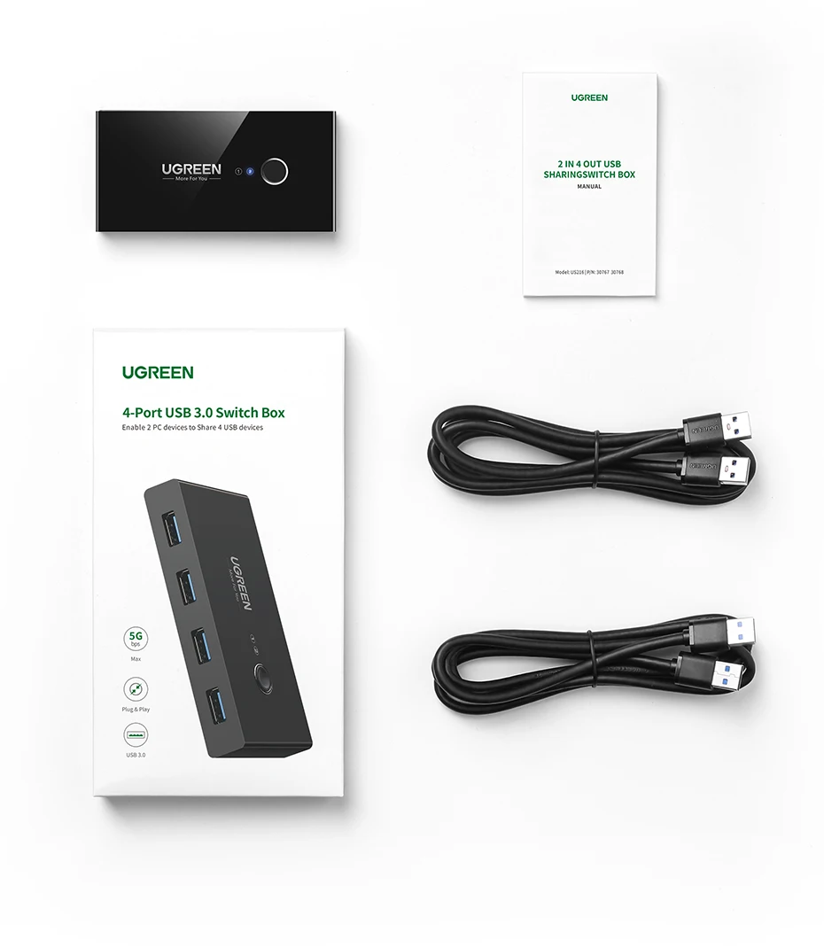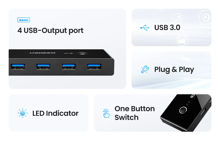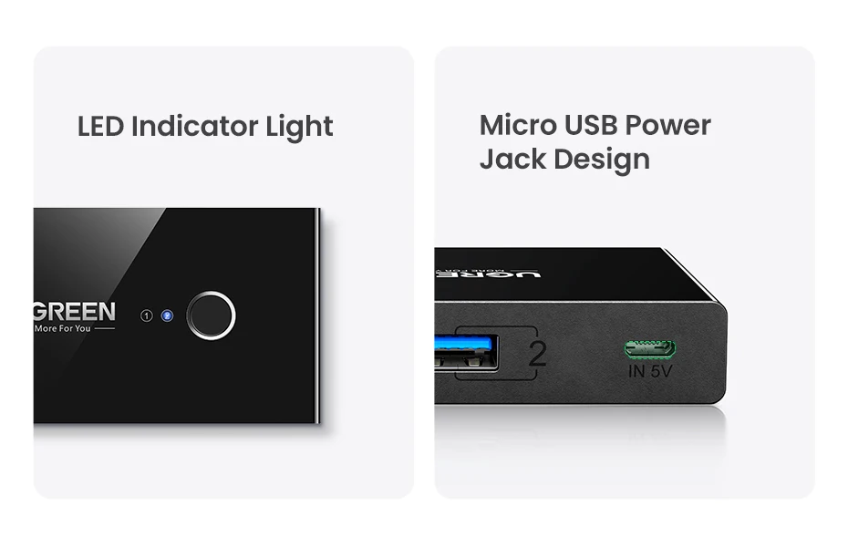 • UGREEN 4Port USB Switch is an excellent choice to share 4 USB devices between two Comptuers;