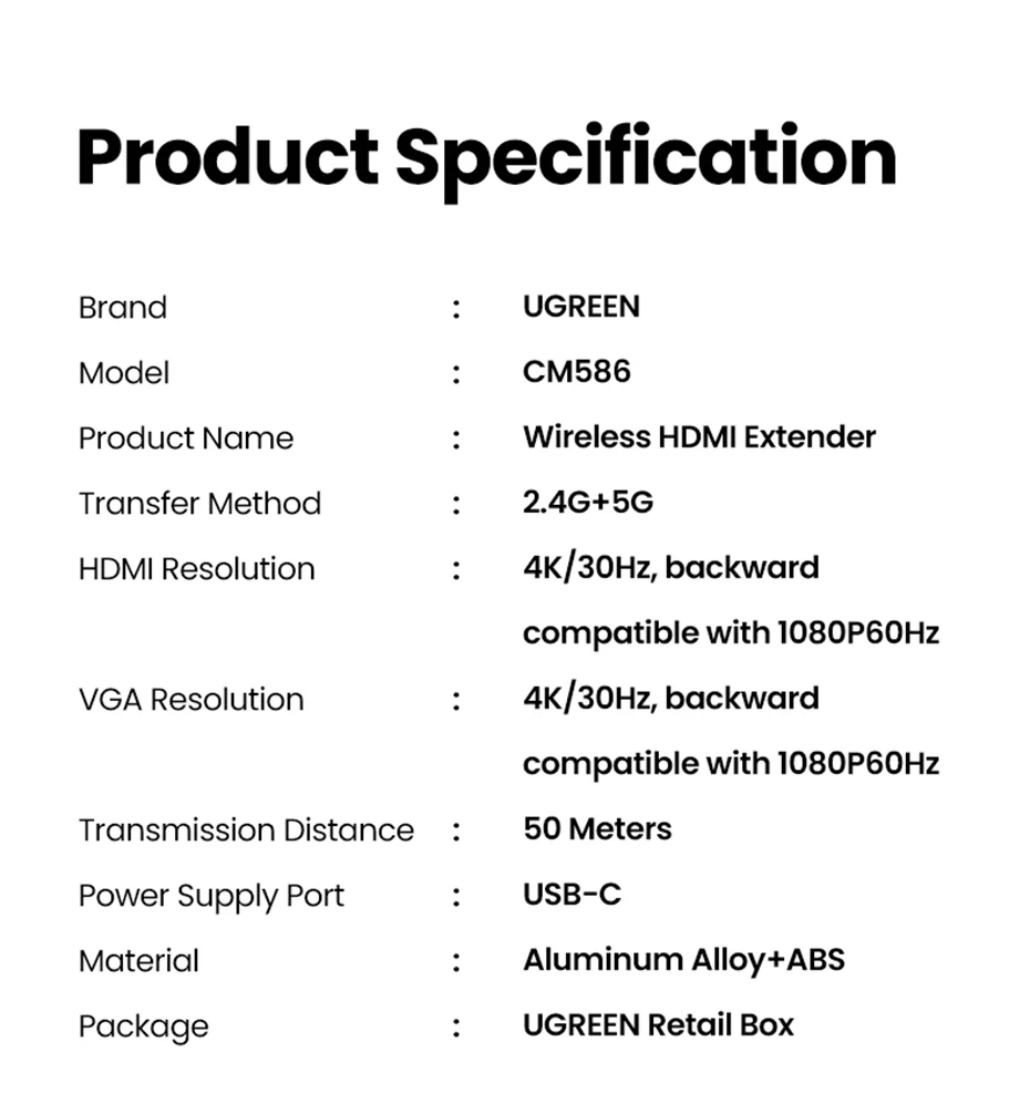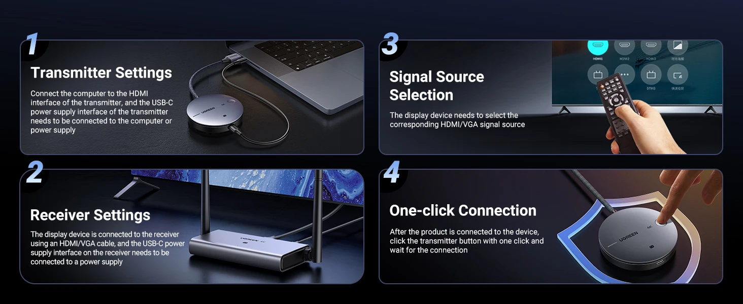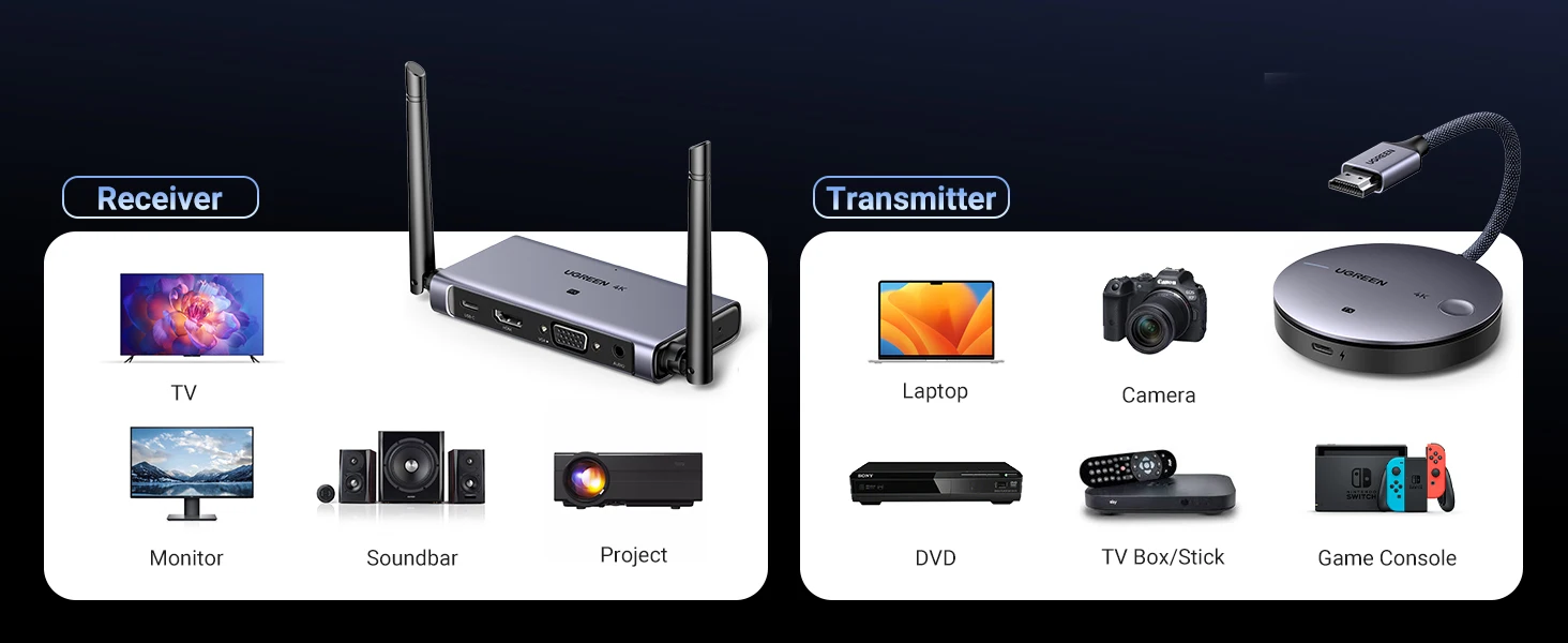 UGREEN Wireless HDMI Extender Kit 5G 50M Video Transmitter & Receiver 4K 30Hz Transmits Display Adapter for TV PC Monitor