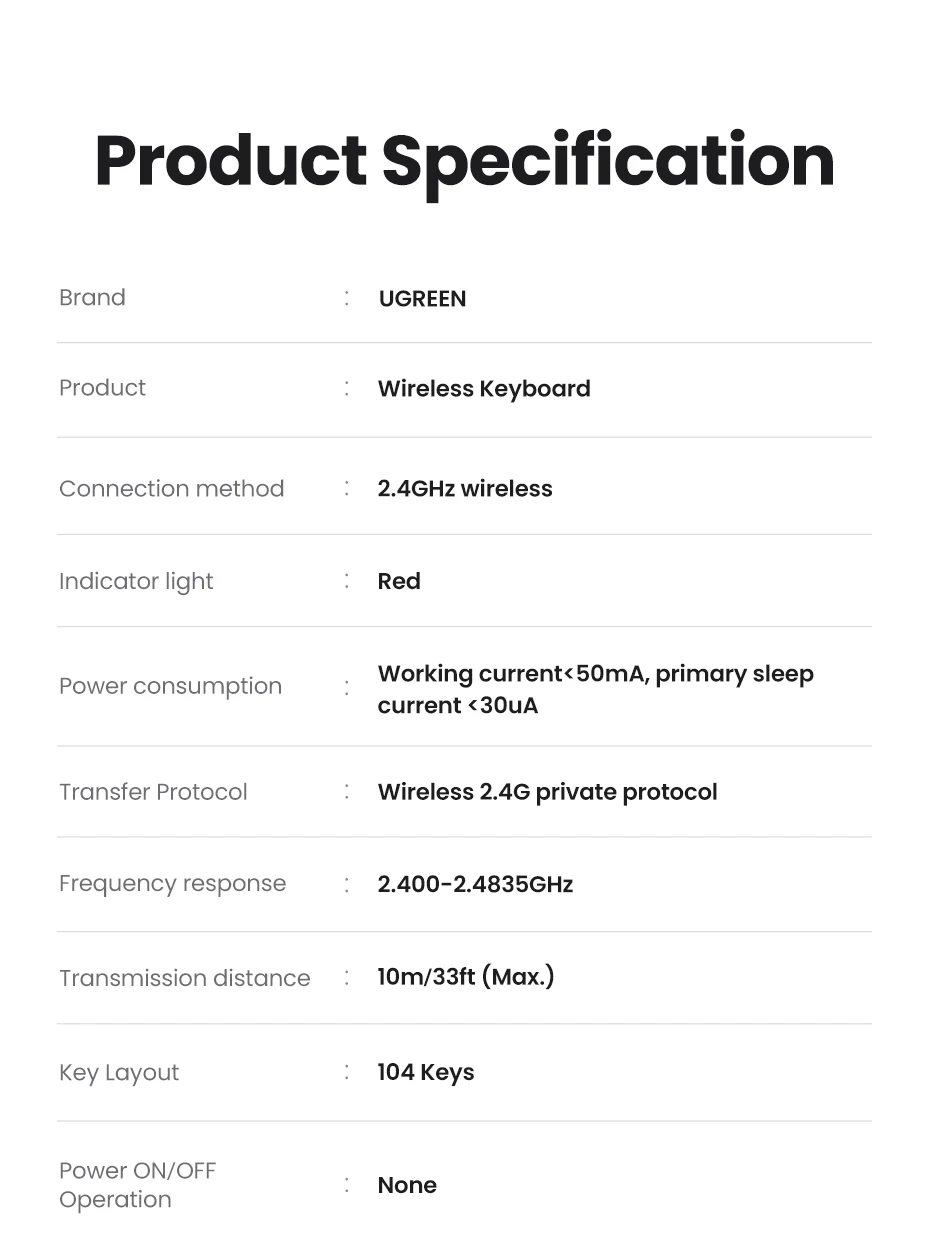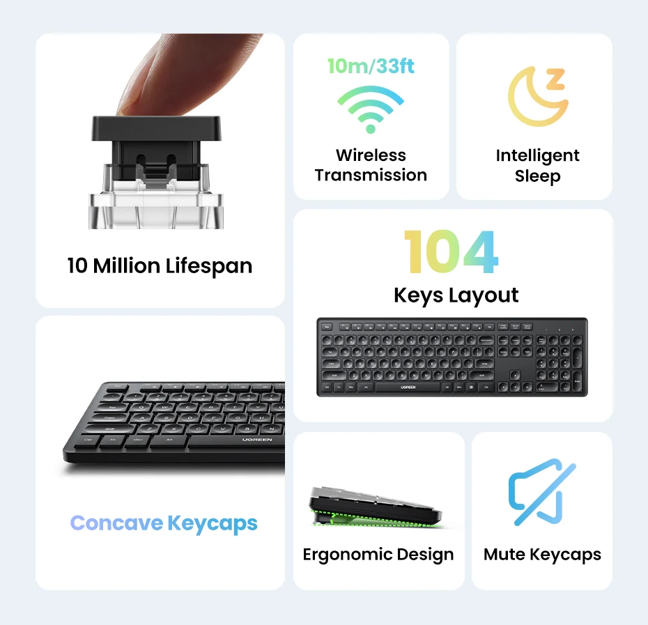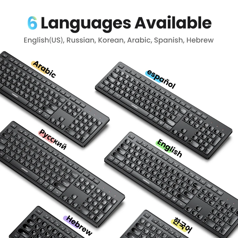 UGREEN Wireless Keyboard 2.4GHz 104 Keys Layout for Laptop Desktop Windows Mac OS PC Accessories English Russian Korean Keycaps