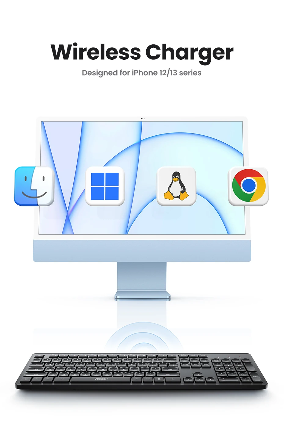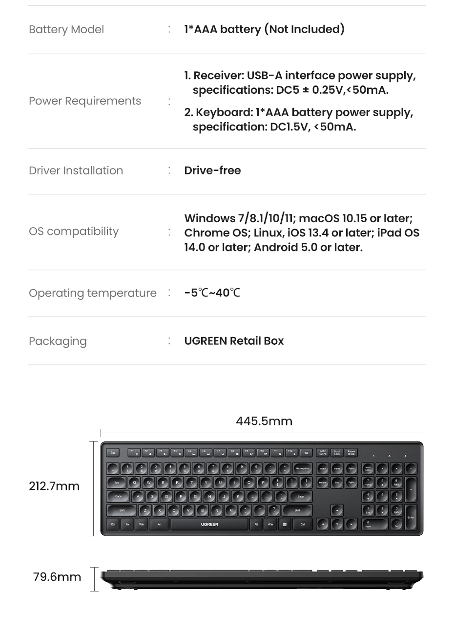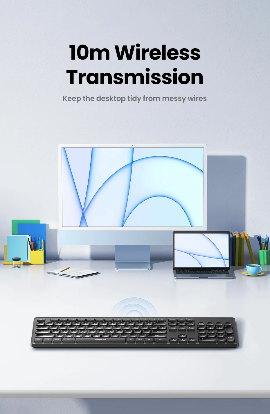 UGREEN Wireless Keyboard 2.4GHz 104 Keys Layout for Laptop Desktop Windows Mac OS PC Accessories English Russian Korean Keycaps
