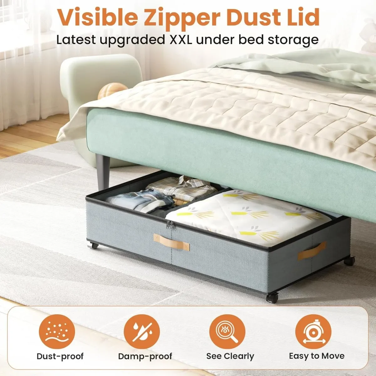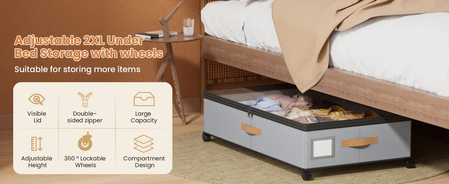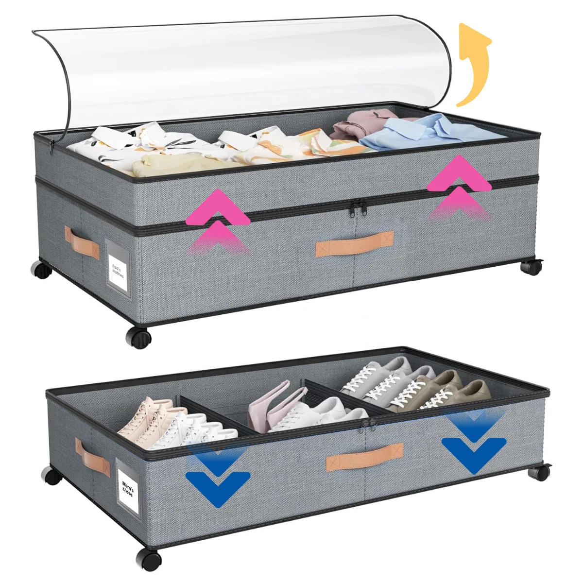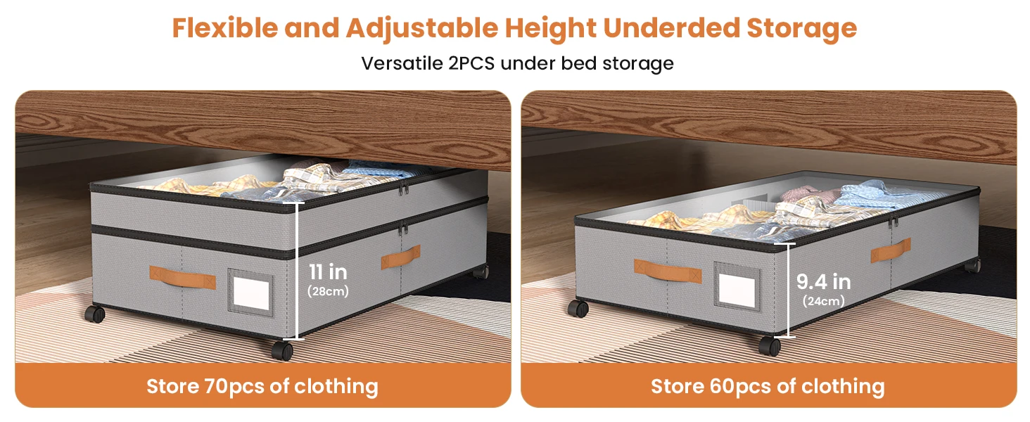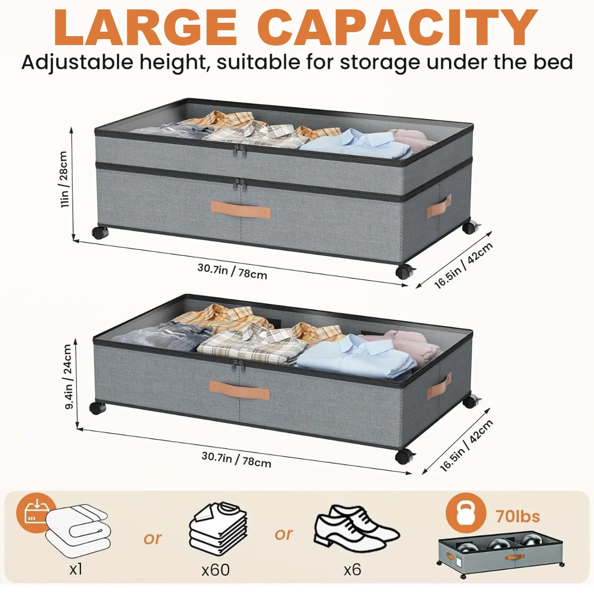 Under Bed Storage Containers with Wheels Closet Organizers Storage Adjustable Underbed Storage for Shoes, Clothes, Blankets, Toy
