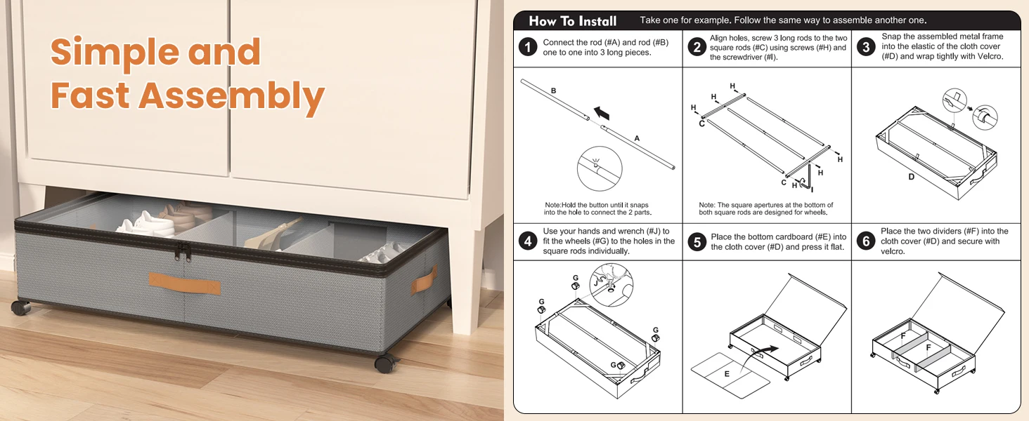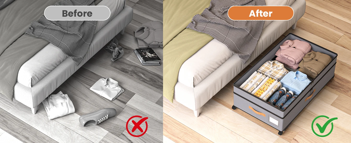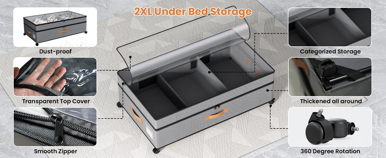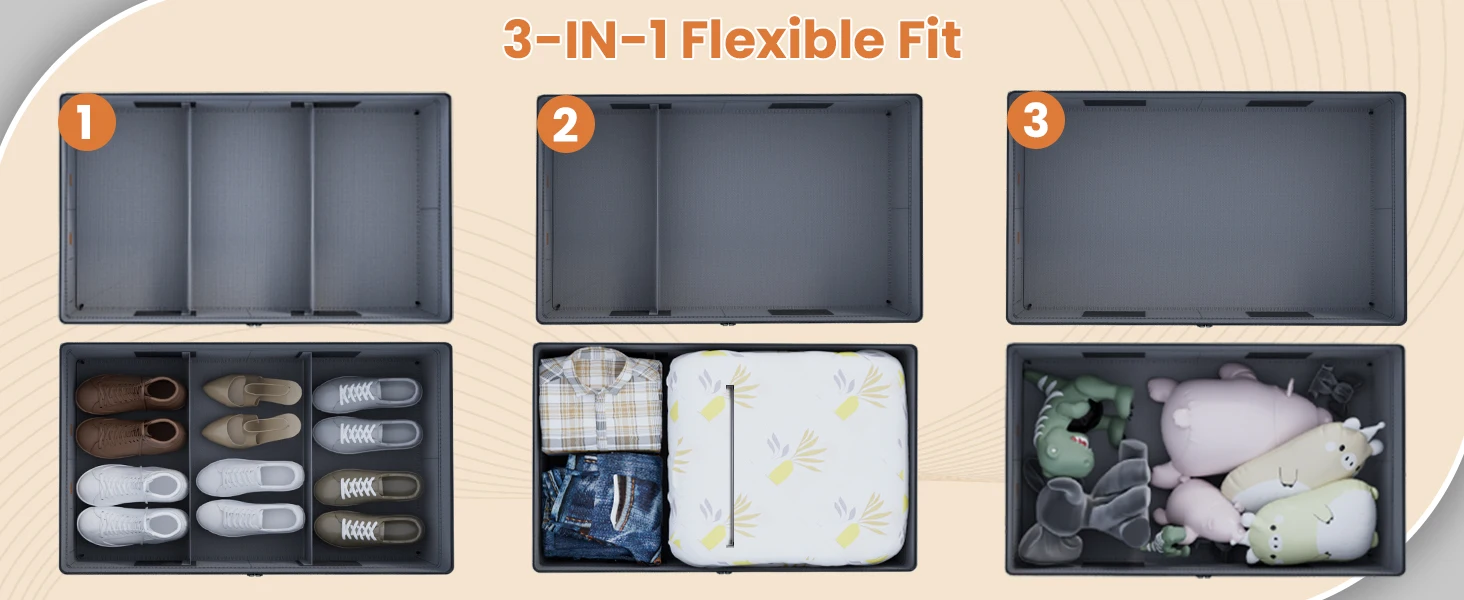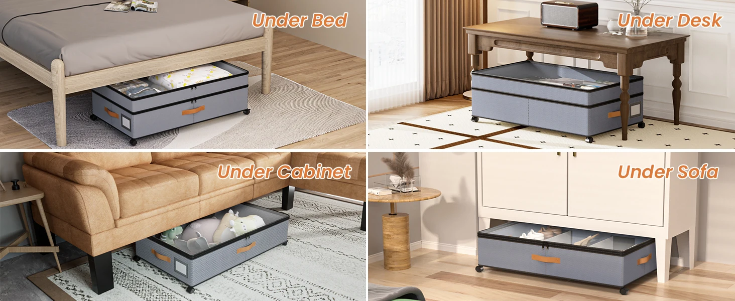 Under Bed Storage Containers with Wheels Closet Organizers Storage Adjustable Underbed Storage for Shoes, Clothes, Blankets, Toy