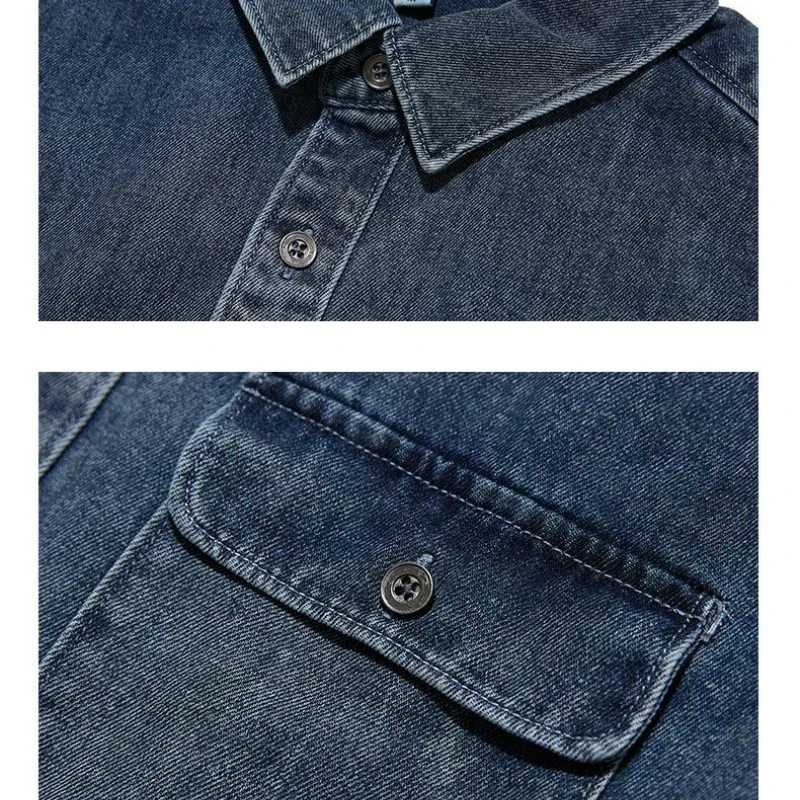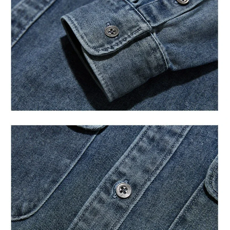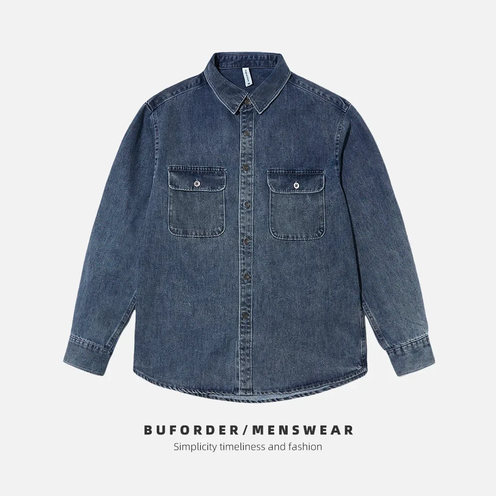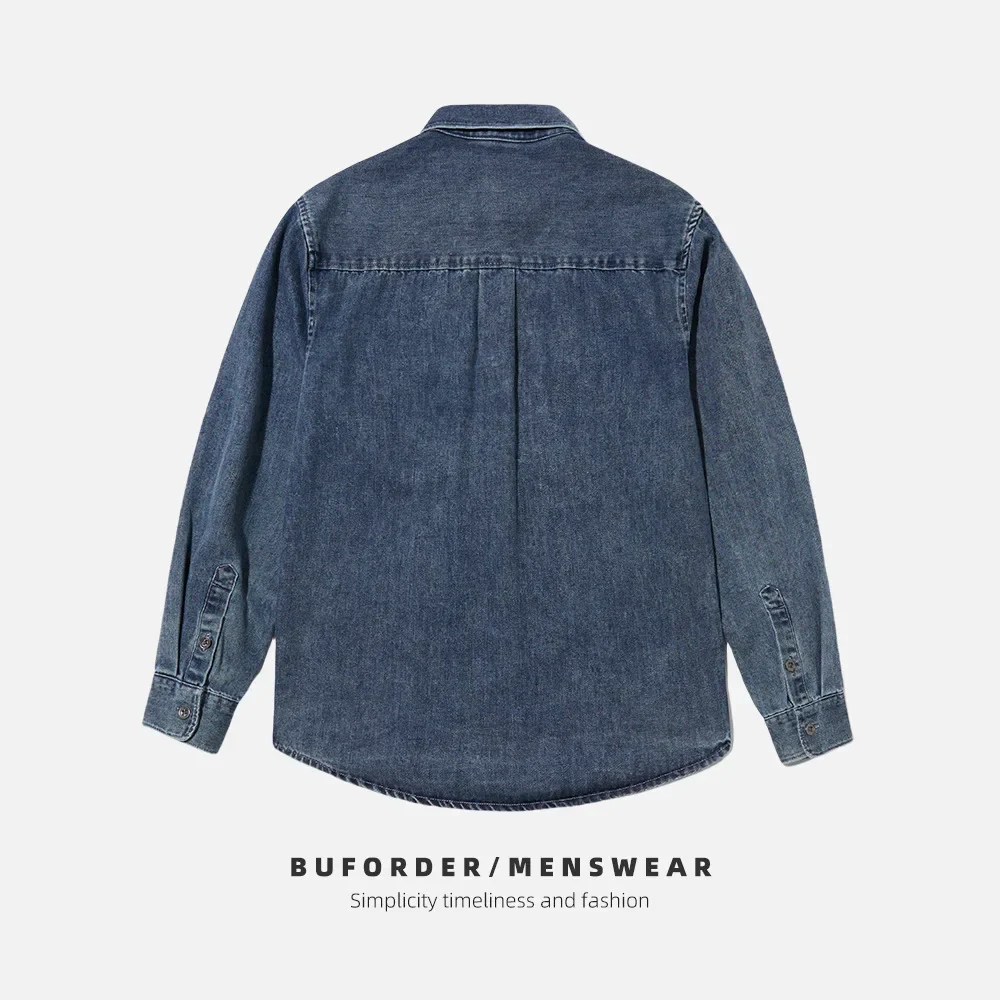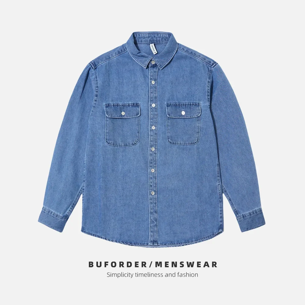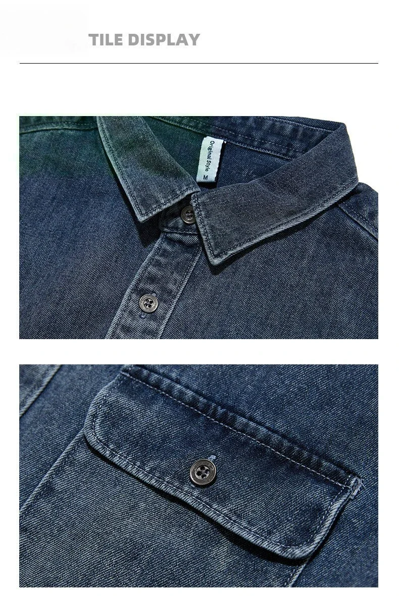 Spring New Retro Denim Shirts Men Casual 100% Cotton Gradient Men Clothing C8807