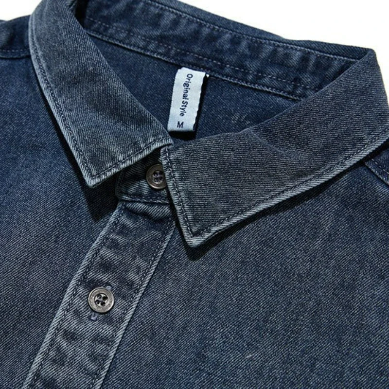 أنت تشاهد الآن:Unisex 80% Cotton Denim Shirt - Vintage Washed Long Sleeve Casual Oversized Shirt with Double Chest Pockets for Men & Women
