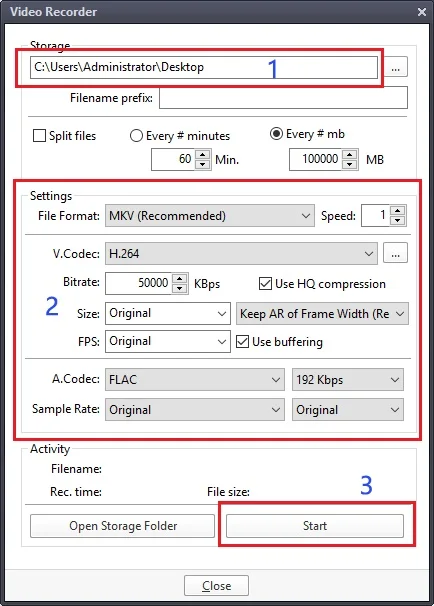 ② Set up audio and video capture;