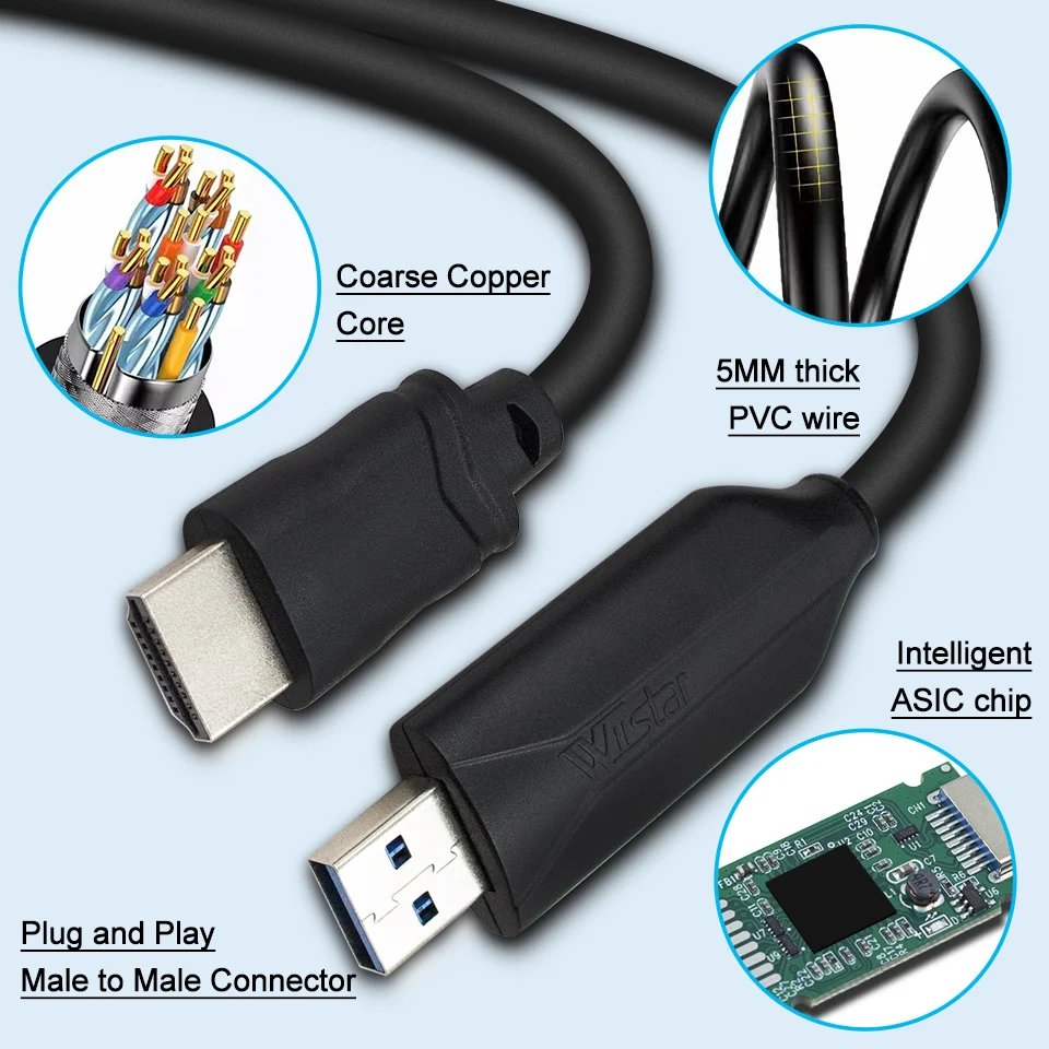 USB 3.0 to HDMI Converter Adapter 1080P60 USB to HDMI Cable External Graphics Video Adapter Cable 1.5M for PC Computer to Monitor