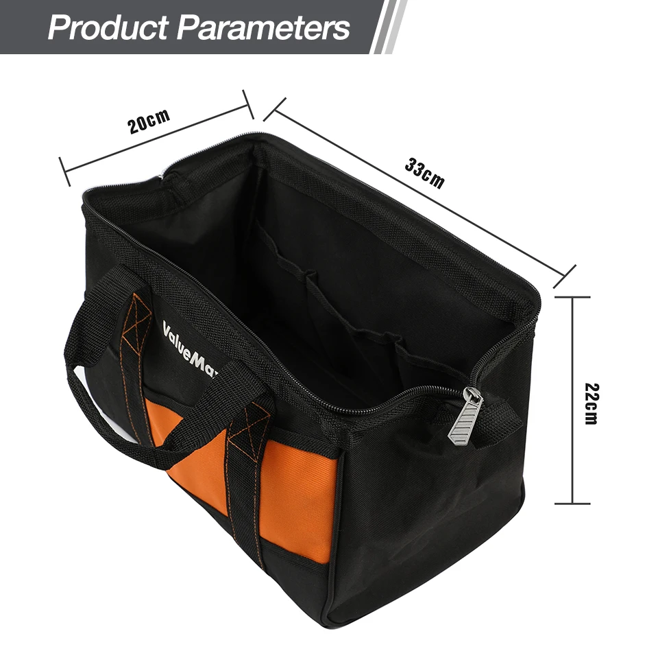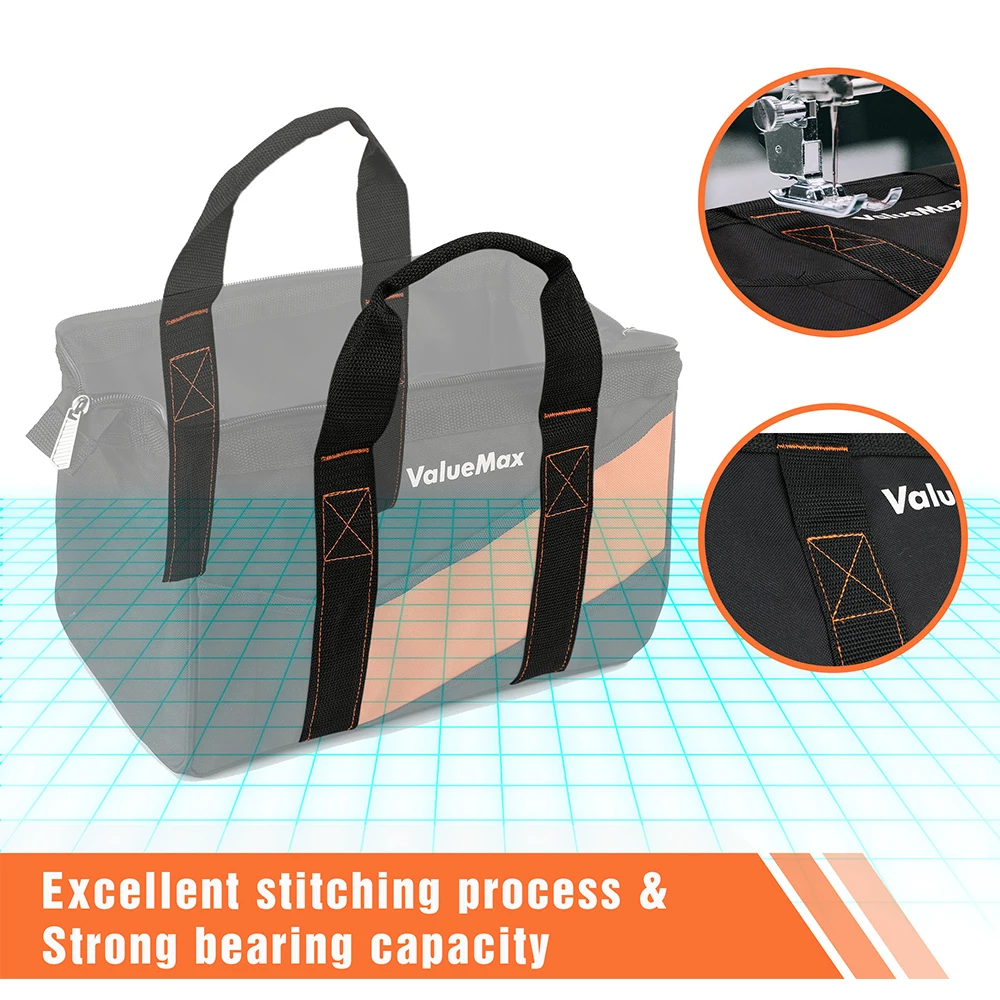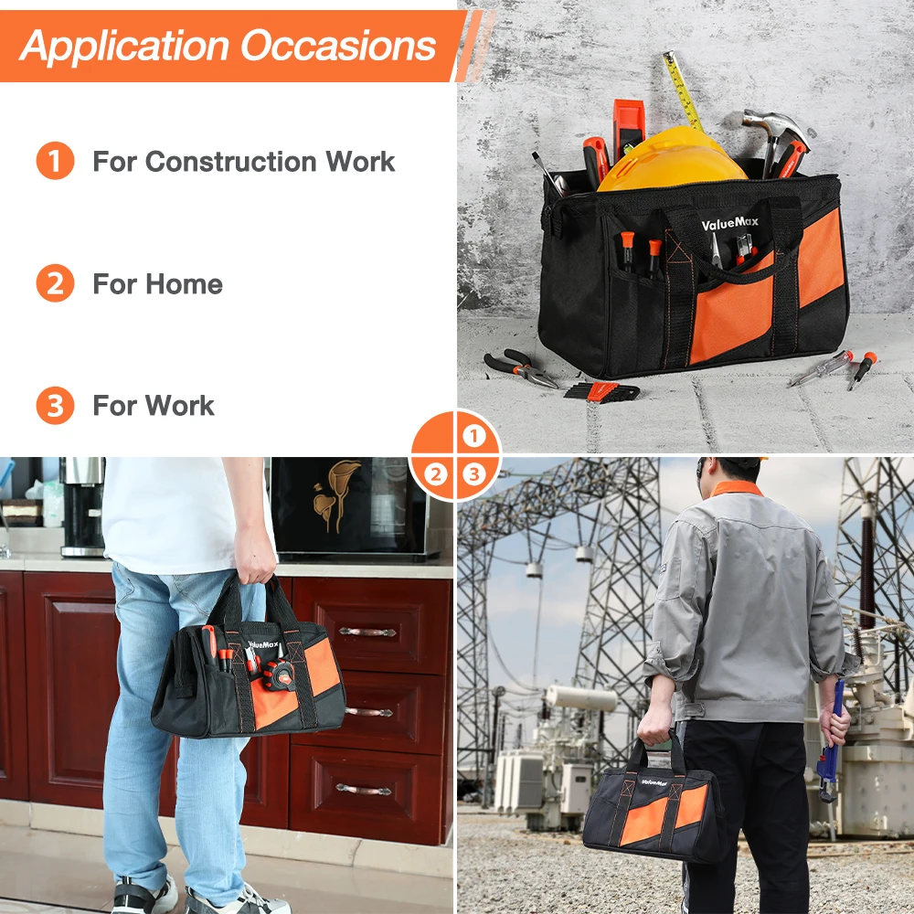 ValueMax 13-Inch Tool Bag, Wide Mouth Tool Bag with 12 Storage Pockets, Heavy Duty Orange Tool Tote Organizer