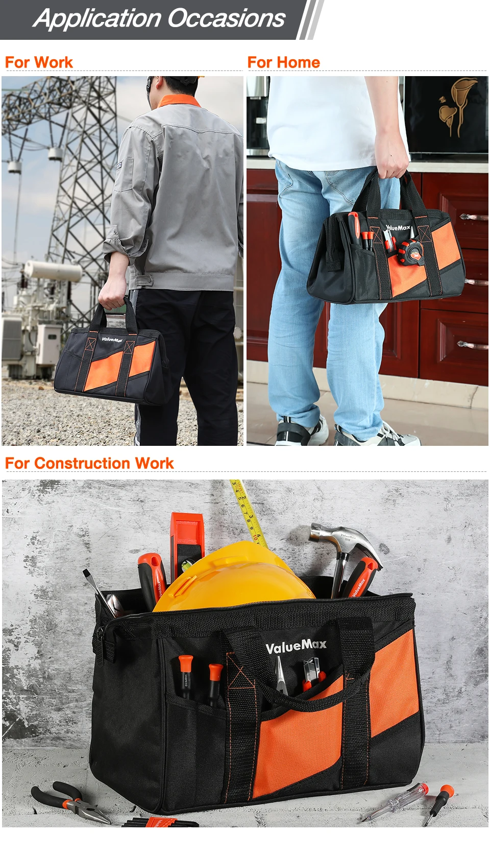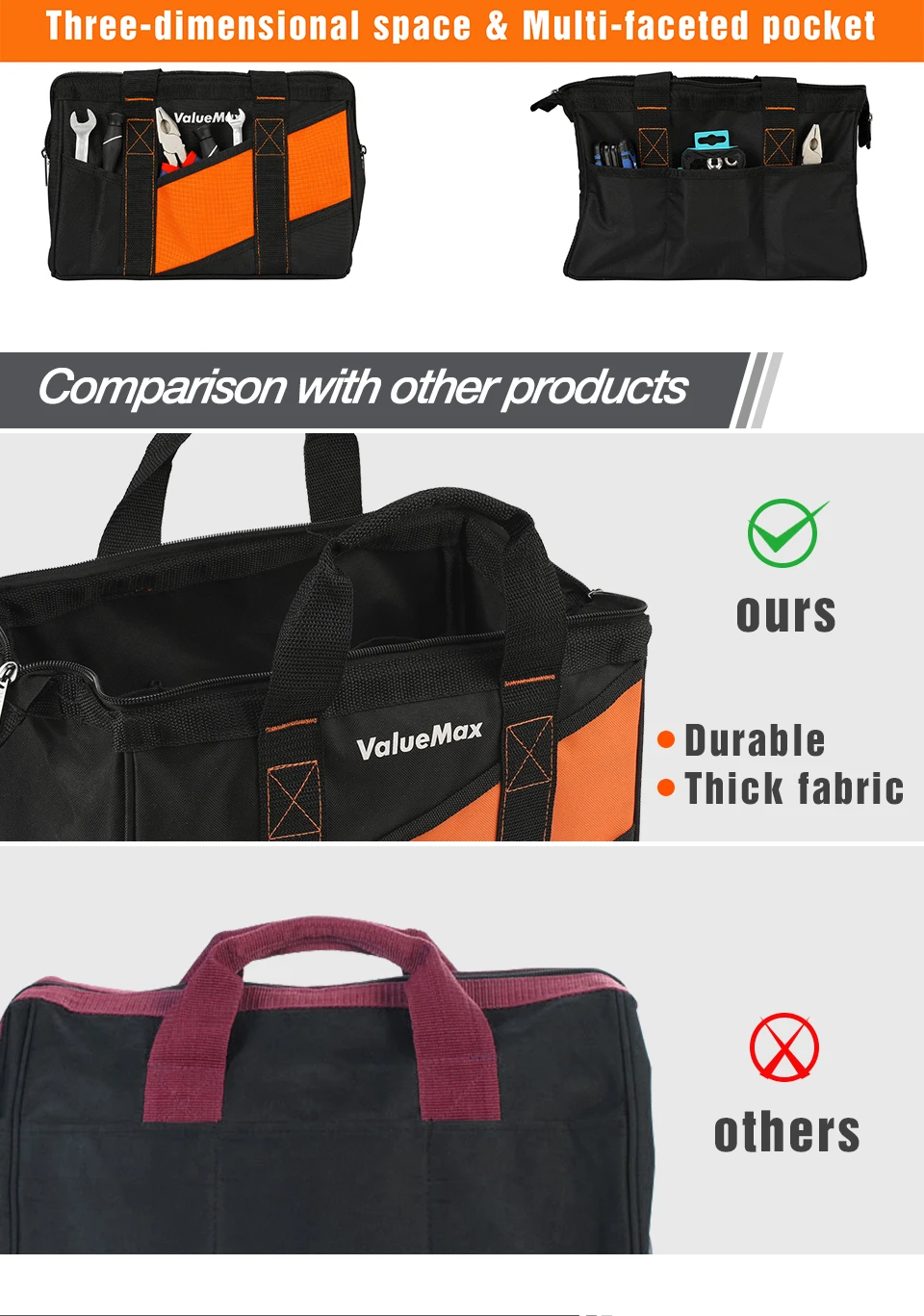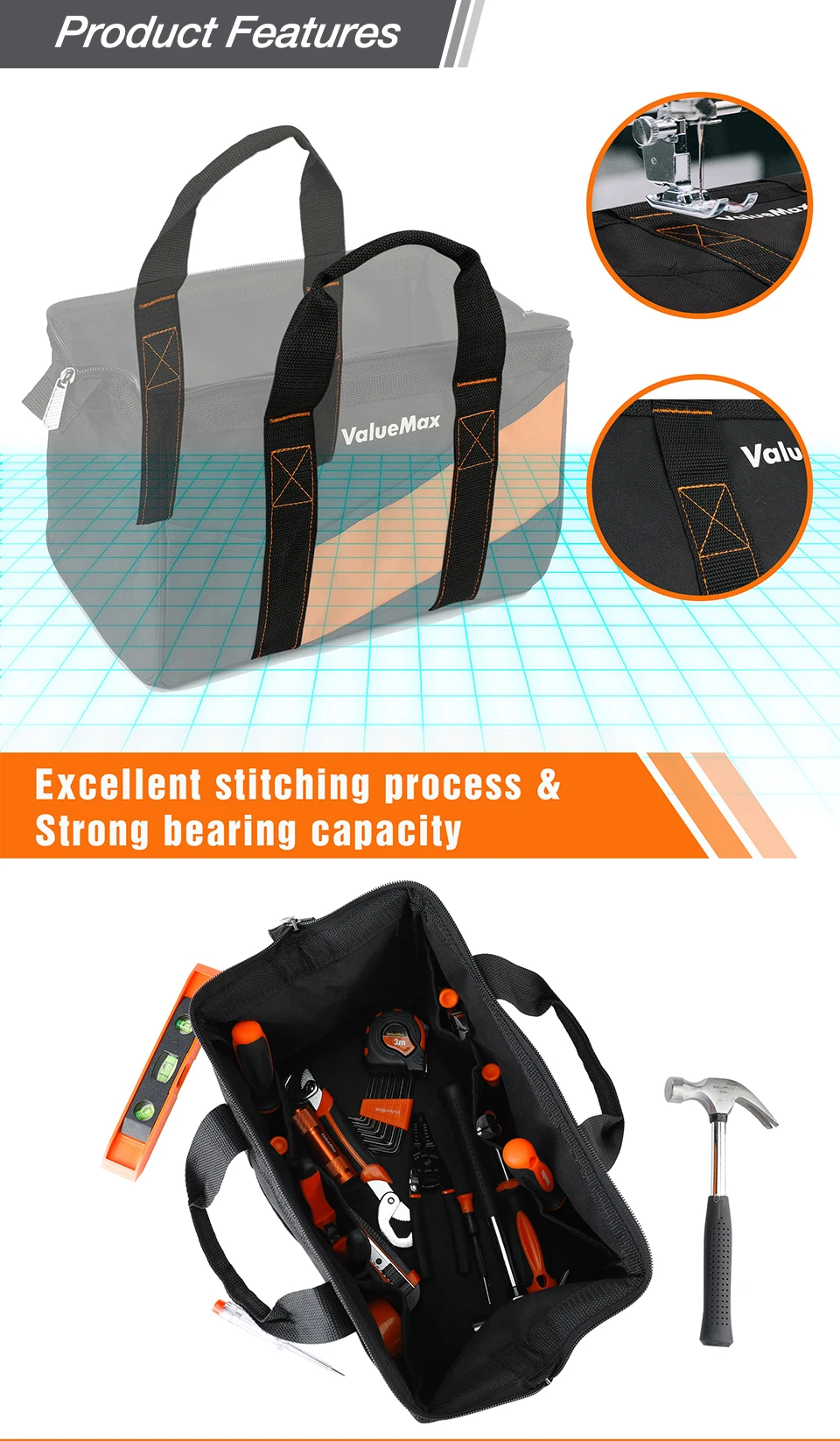 ValueMax 13-Inch Tool Bag, Wide Mouth Tool Bag with 12 Storage Pockets, Heavy Duty Orange Tool Tote Organizer