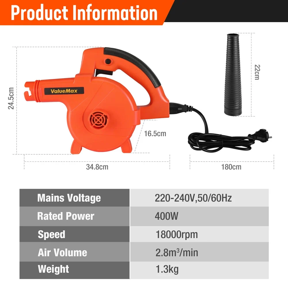 أنت تشاهد الآن:Valuemax 2 In 1 Blowing&Suction Leaf Dust Collector Turbo Blower Garden Vacuum Clean Air Blower Garden Tools