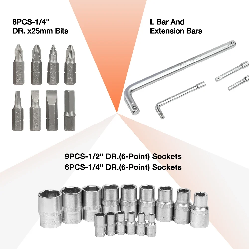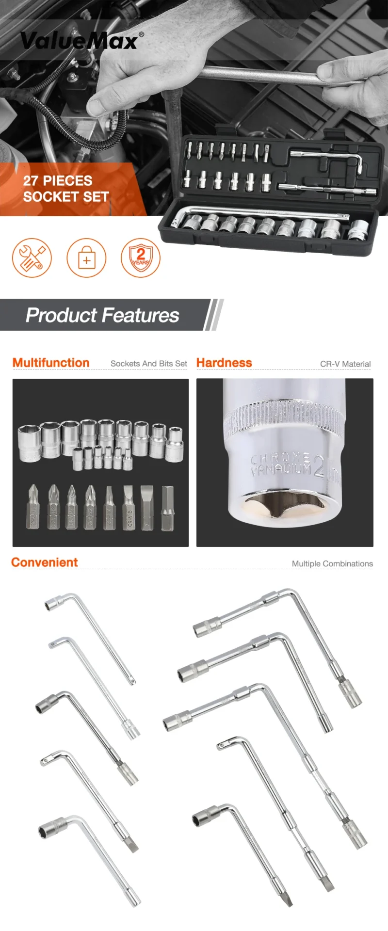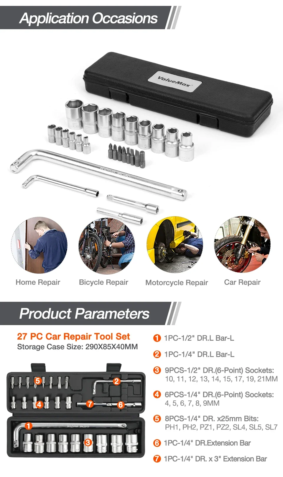 ValueMax 27pcs Car Repair Tool Set Mechanic Tool Kits Screwdrivers Ratchet Spanner Wrenches Sockets