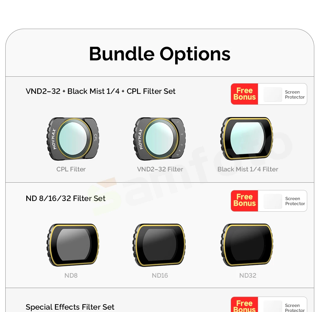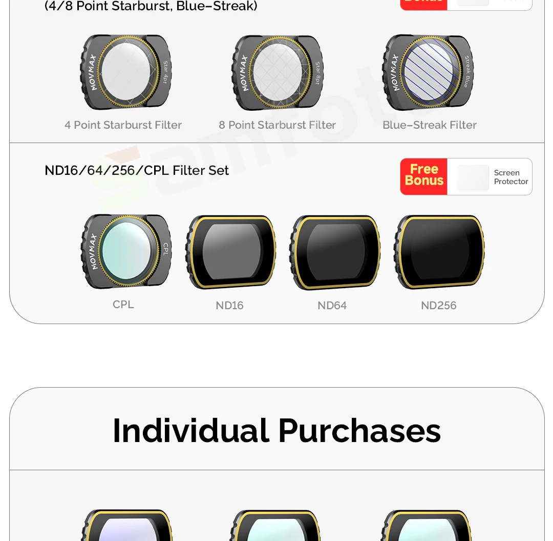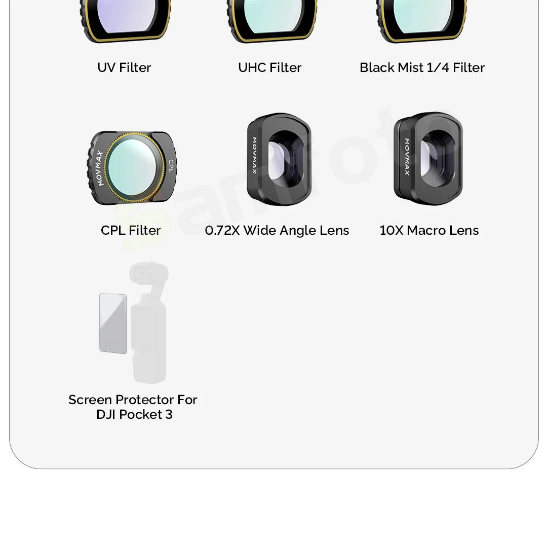 Vaxis MOVMAX Filter Series VND2-32 Black Mist 1/4 CPL Filter Set ND 8/16/32 Filter Set for Dji Pocket’3