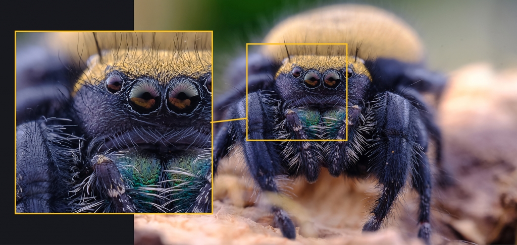 The lens offers a 2:1 maximum magnification ratio along with a minimum focusing distance of 6.7”(17cm). Different from traditional macro lenses, this 65 mm lens can focus from infinity to 2X magnification, making it an ideal option to tackle all kinds of macro photography scenarios. The wide magnification range is essential for shooting insects and plants at different sizes.